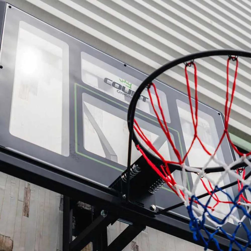 Court Layup Hoop on varustettu tukevalla takakannella, joka mahdollistaa tehokkaat vapaaheitto- ja layup-harjoitukset. Siinä on takana teräskiinnikkeet, jotka voidaan kiinnittää haluttuun korkeuteen.