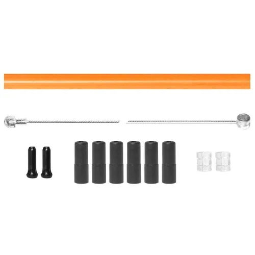 Sættet indeholder tilstrækkelig slange til at for- og bagside kan skæres til, to galvaniserede bremsekabler med dobbelt MTB-hoved og race, 6 slangeterminaler, 2 kabelterminaler og 2 anti-vibrationsgummi.