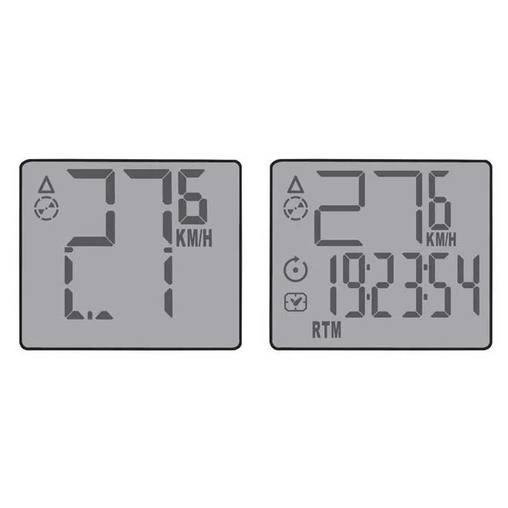 Meget kompakt, klar og pålidelig 12-funktionscykelcomputer med trådløs transmission, velegnet til rekreative formål eller begynderhobbycyklister. Det tilbyder nok grundlæggende information om hastighed, afstand eller varighed af turen. Simpel og intuitiv betjening takket være én knap og valgfri skærm for hastighed i store og letlæselige tal (kun virker mens du kører efter at have valgt denne skærm-tilstand).
