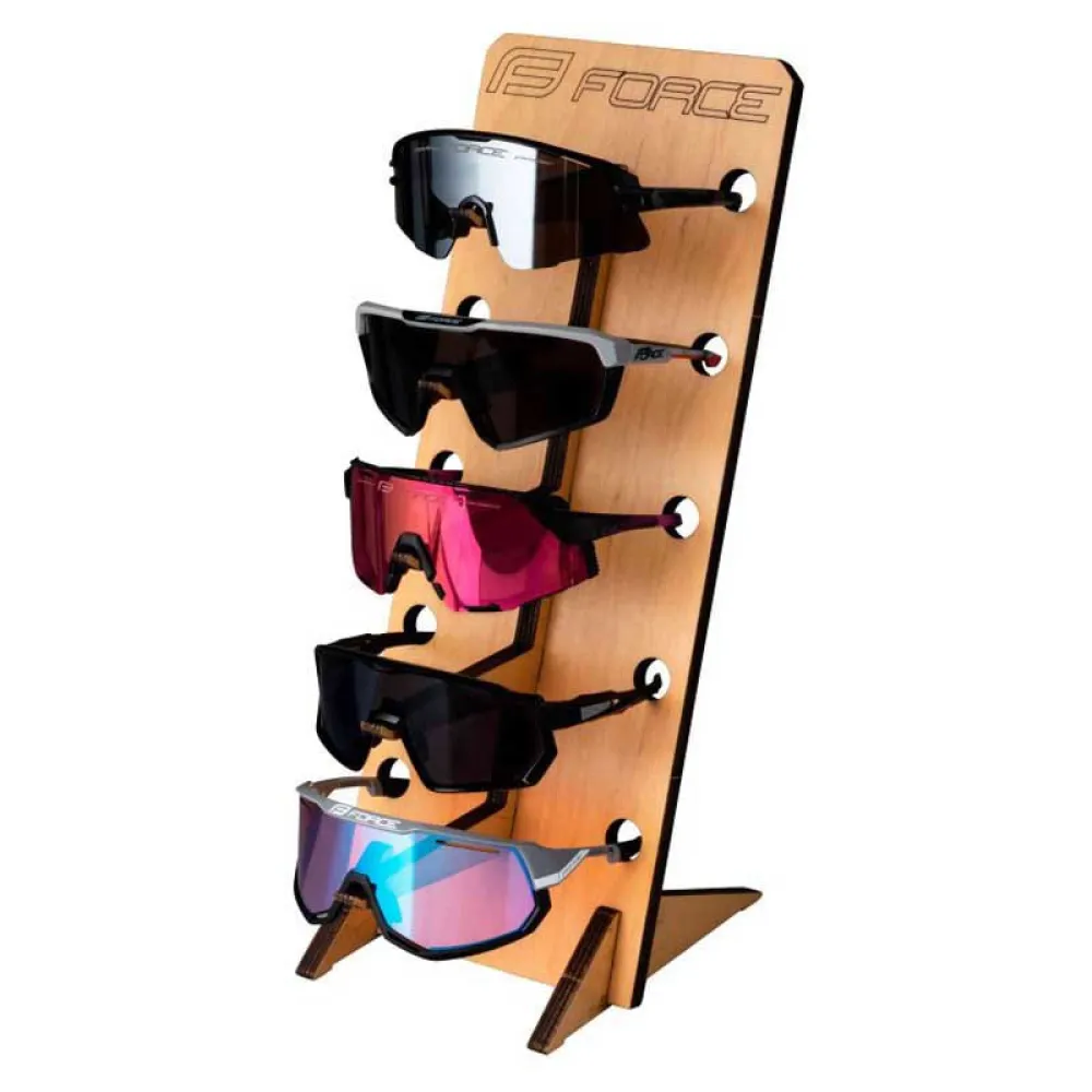Hovedfunktionerne i FORCE Borddisplay inkluderer dets specialbyggede design, som giver en sikker og perfekt pasform til FORCE briller, hvilket sikrer, at de sidder ensartet og sikkert. Stativets struktur er både let for nem omplacering og robust nok til at forblive stabilt, hvilket giver ro i sindet om, at dine briller er godt beskyttet. Den slående imiterede træfinish tilbyder en varm, naturlig æstetik, der komplementerer en bred vifte af indretninger, fra moderne og minimalistisk til rustik og klassisk, og tilføjer et strejf af klasse til sine omgivelser.