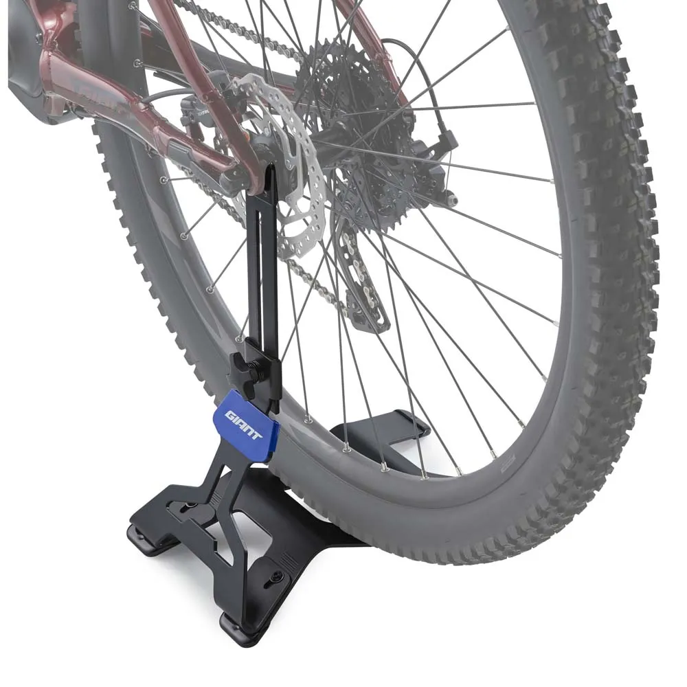GIANT Cykelstativet fjerner besværet med cykelopbevaring. Du skal blot rulle din cykel på plads og lade stativets innovative design gøre resten. Dets robuste konstruktion og strategisk placerede kontaktpunkter giver uovertruffen stabilitet, hvilket sikrer, at din cykel forbliver oprejst og sikker, selv på ujævne overflader.