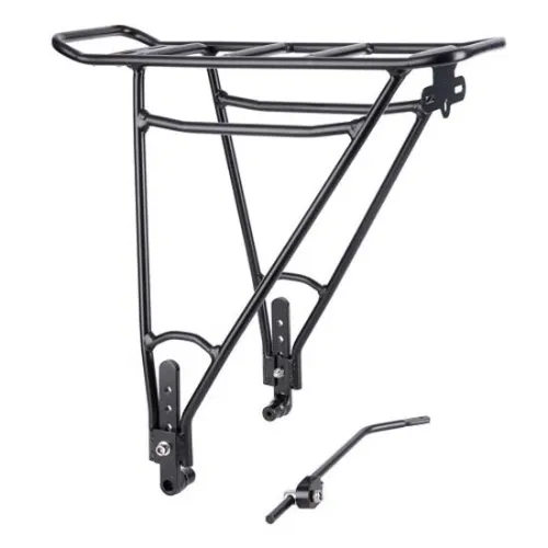 Denne robuste bagagebærer er konstrueret til holdbarhed og styrke og er fremstillet til at modstå strabadserne ved daglig brug. Dens slanke design integreres problemfrit med din cykelramme, hvilket tilføjer minimal bulk, samtidig med at det maksimerer bæreevnen.