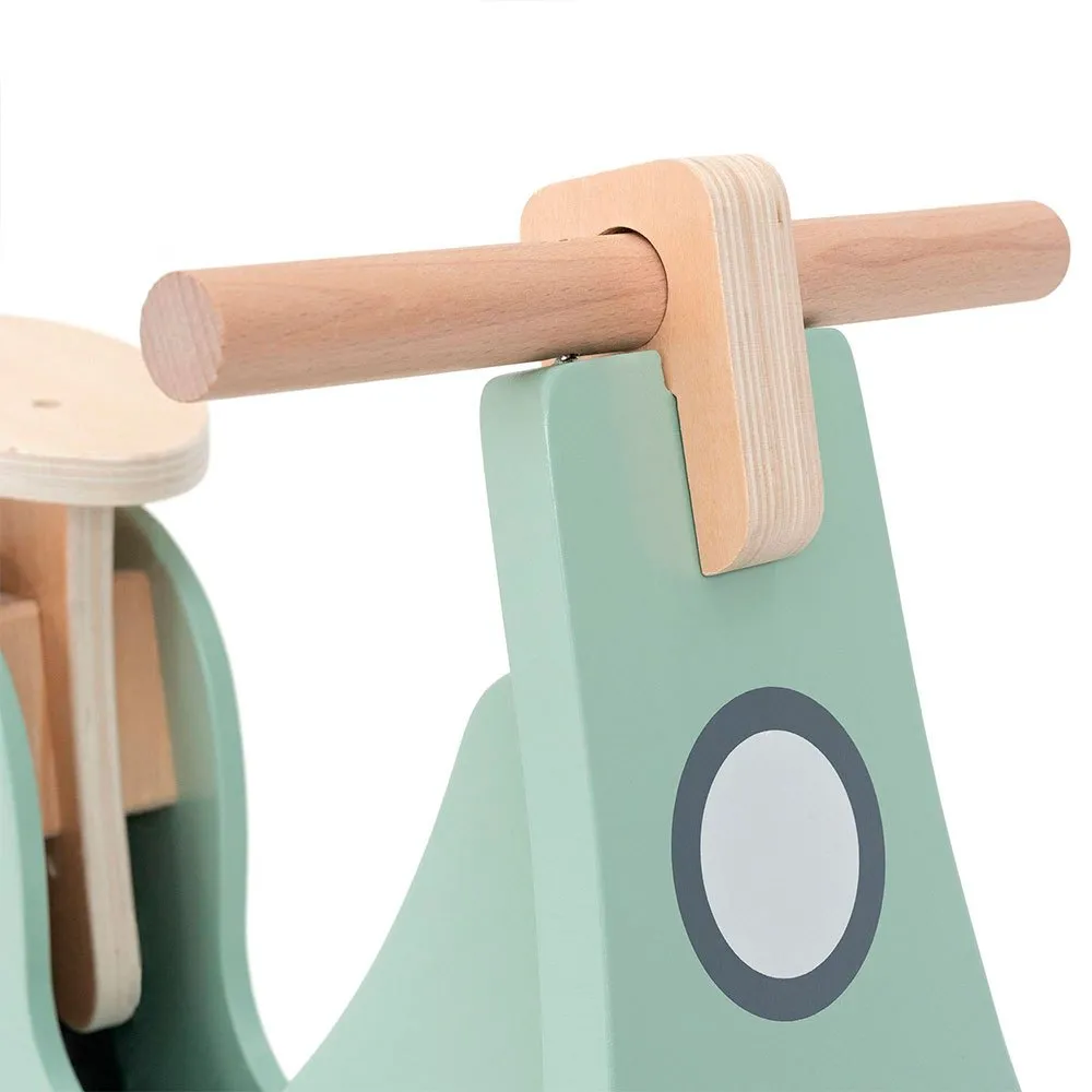 ´Green Motorbike´ ride-on er lavet af træ i form af en cykel uden pedaler for at give barnet følelsen af at være en rigtig sportsmand, samtidig med at det styrker benene, får selvtillid og træner balance og koordination. Sadlen fås i 2 forskellige højder.