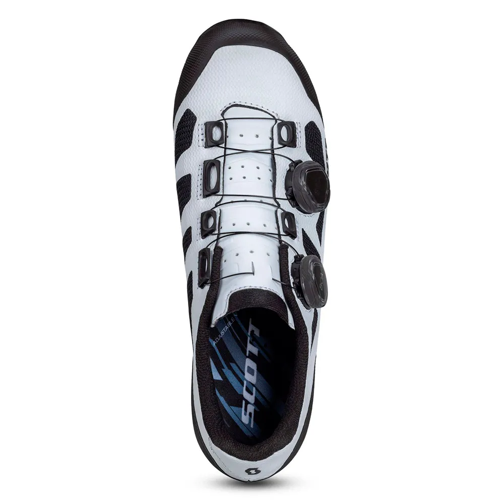 - Vores high-end landevejs- og mountainbikesko leveres alle med en anatomisk designet, justerbar indersål. Fodzoneterapi giver os mulighed for at tage højde for fodens anatomiske form og ergonomisk forme vores indlægssåler på forhånd, så de passer perfekt og støtter cyklistens fod. Dette giver et stabilt fundament for forbedret komfort og kraftoverførsel. SCOTTs modulære fodseng giver mulighed for justeringer til rytterens individuelle behov og præferencer med to forskellige volumen svang- og mellemfodspuder til medium- og lavvolumenfødder.