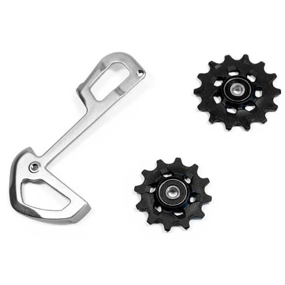 Denne nye speditør svarer ikke kun Eagle ™ drivetrainens behov for større kapacitet, men er også den næste udvikling af vores dokumenterede 1x specifikke X HORIZON ™ -design. Den større, 14 tand X SYNC ™ nedre remskive giver mulighed for 10 til 50 tandkassettekapacitet i dette kompakte design, og øger også Eagle's overordnede glatte pedal-føler. Vores nye Type 3 ROLLER BEARING CLUTCH ™ har en glattere drejningsmomentkurve for en mere støjsvage og mere konsekvent drift og følelse. CAGE LOCK ™ er blevet flyttet tilbage og ud af vejen, og beskytter den mod sporrester. Et omdesignet, robust monteringssystem forbedrer yderligere Eagle ™ -sporens ydeevne og overordnede holdbarhed.