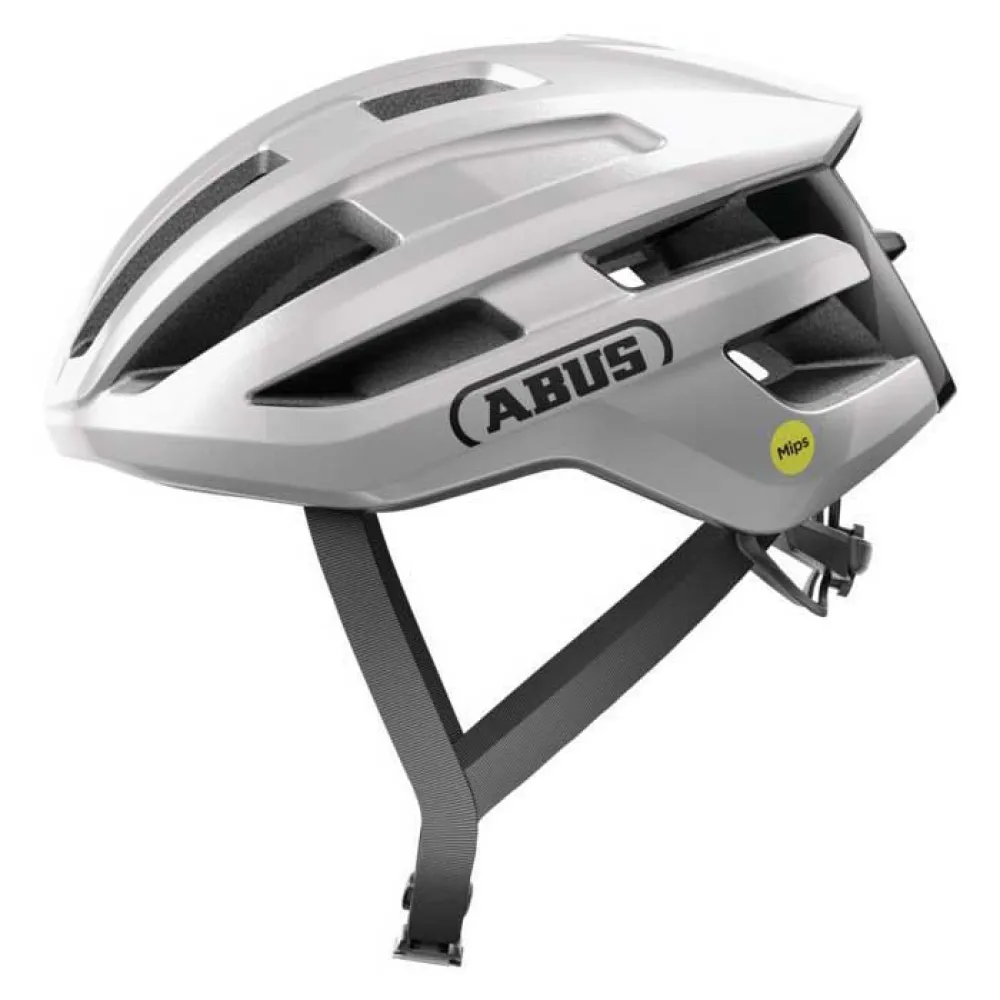 Der ABUS PowerDome MIPS Helm in Gleam Silver ist ein Spitzenhelm für Rennradfahrer, die Wert auf maximalen Schutz und Leistung legen. Dieser schlanke und stylische Helm verfügt über ein MIPS (Multi-directional Impact Protection System), das im Falle eines Sturzes zusätzliche Sicherheit bietet, indem es die Rotationskräfte auf das Gehirn reduziert.