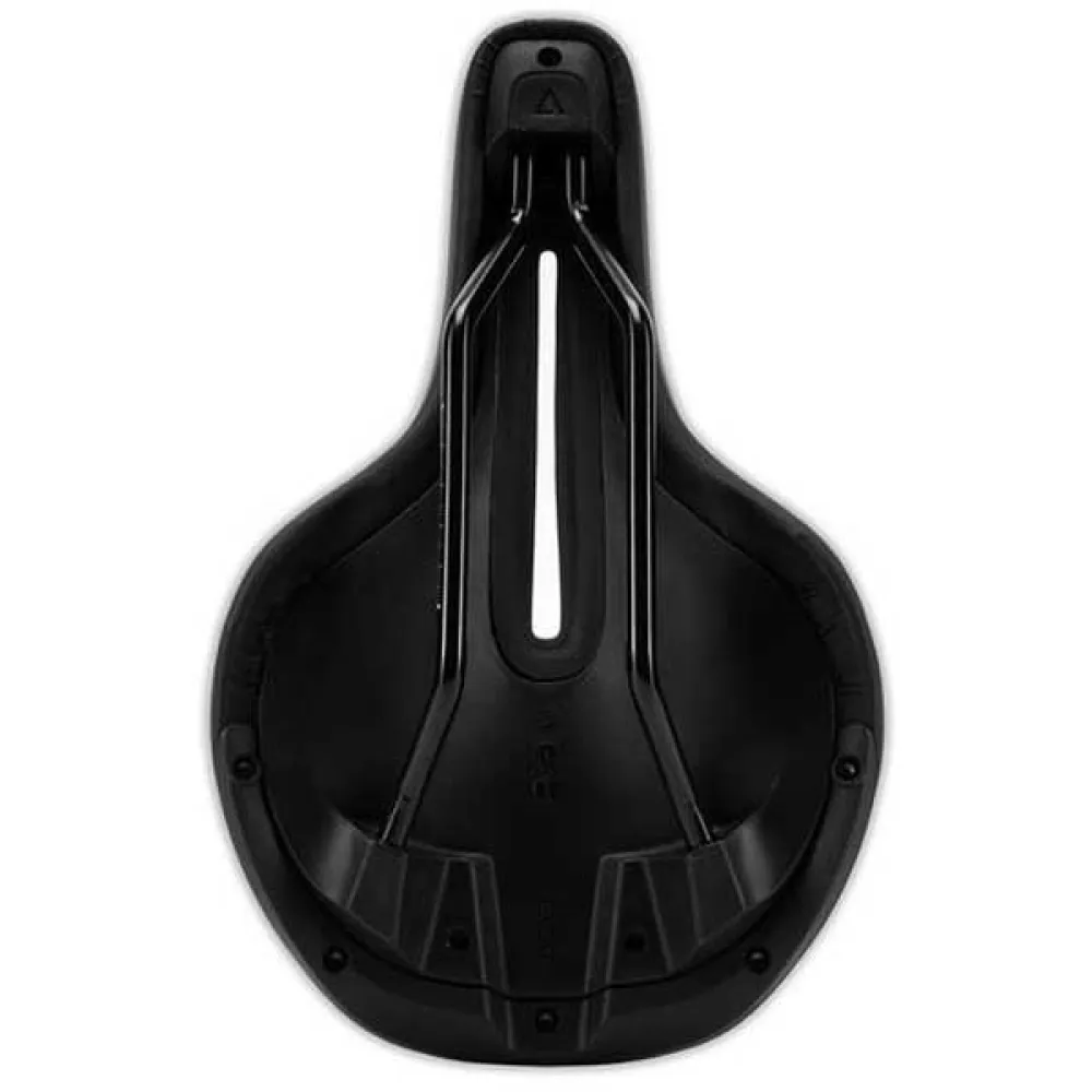Die Leistung wird durch das markante T-Form-Profil des Sattels weiter verbessert. Dieses intelligente Design bietet maximale Bewegungsfreiheit für deine Beine und sorgt für einen uneingeschränkten und effizienten Pedaltritt. Durch die Minimierung von Reibung und Beeinträchtigungen ermöglicht die T-Form die direkte Übertragung jedes Watts Leistung auf die Pedale und wandelt deine Anstrengung in pure Geschwindigkeit um. Der Sattel verfügt außerdem über eine ausgeklügelte Stoßdämpferverbindung zwischen den Rails und der Schale. Diese innovative Technologie wirkt wie ein Mikrofedersystem und dämpft effektiv hochfrequente Vibrationen von rauen Straßenoberflächen. Das Ergebnis ist ein spürbar ruhigeres Fahrgefühl, weniger Ermüdung im unteren Rückenbereich und im Rumpf sowie eine verbesserte Kontrolle über dein Fahrrad.
