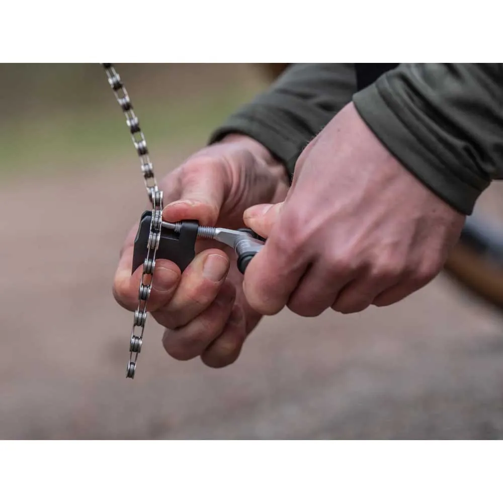 Begeben Sie sich auf eine Reise mit 16 Funktionen, die sorgfältig entwickelt wurden, um Ihre Fahrradbegeisterung aufrechtzuerhalten! Das RoyalFold Chaintool, ein kompaktes Werkzeug mit edlem Charakter, umfasst alle wichtigen Werkzeuge für kleinere Reparaturen am Straßenrand und mehr. Ein diskretes Fach, das strategisch für ein Kettenglied konzipiert wurde, sorgt für zukünftigen Komfort. Darüber hinaus verfügt es über einen Mini-Kettennieter, mit dem Sie Kettenprobleme während der Fahrt beheben können. Dieses robuste und kompakte Werkzeug garantiert zuverlässige Hilfe in schwierigen Situationen.