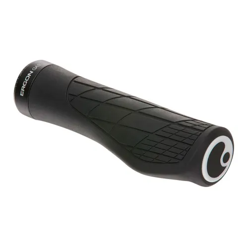 Das Beste aus beiden Welten. Der neue All-Mountain-Komfortgriff. Dieses Konzept kombiniert die Entlastungsvorteile und die Handgelenkstütze ergonomischer Flügelgriffe mit der Bewegungsfreiheit runder MTB-Griffe. Die mit dem GA2 gewonnenen Erfahrungen haben gezeigt, dass die ergonomisch optimierte Form geringe Greifkräfte ermöglicht. Texturen sind an die Griffzonen der menschlichen Hand angepasst; Wandstärke des inneren Kerns doppelt gestoßen, um den Dämpfungskomfort zu erhöhen. Der hervorragende Griff ist typisch für Ergon. Die superweiche, UV-stabile Gummimischung wird exklusiv in Deutschland für Ergon hergestellt! Dies ermöglicht eine bessere Kontrolle auch auf anspruchsvollen Strecken. Die Innenbordklemme ermöglicht noch mehr Greifbereich am Ende der Stangen, ist absolut sicher und kohlenstofffreundlich. Mit austauschbarem Endstopfen.