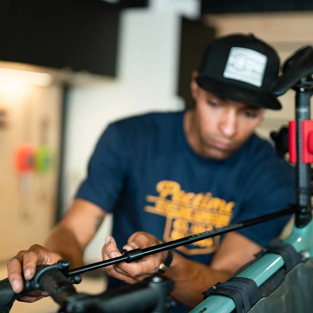 Dank seiner robusten Konstruktion und der sicheren Passform sorgt der Flop Stop Lenkerhalter für Stabilität und Sicherheit bei Wartungsarbeiten. Er wird sicher an den Lenkern befestigt, wodurch verhindert wird, dass sie sich überschlagen, während das Fahrrad aufgehängt ist oder gewartet wird. Diese Funktion ermöglicht einen bequemeren und leichteren Zugang zum Steuersatzbereich, wodurch Aufgaben wie das Einstellen oder Ersetzen der Steuersatzlager einfacher zu erledigen sind.
