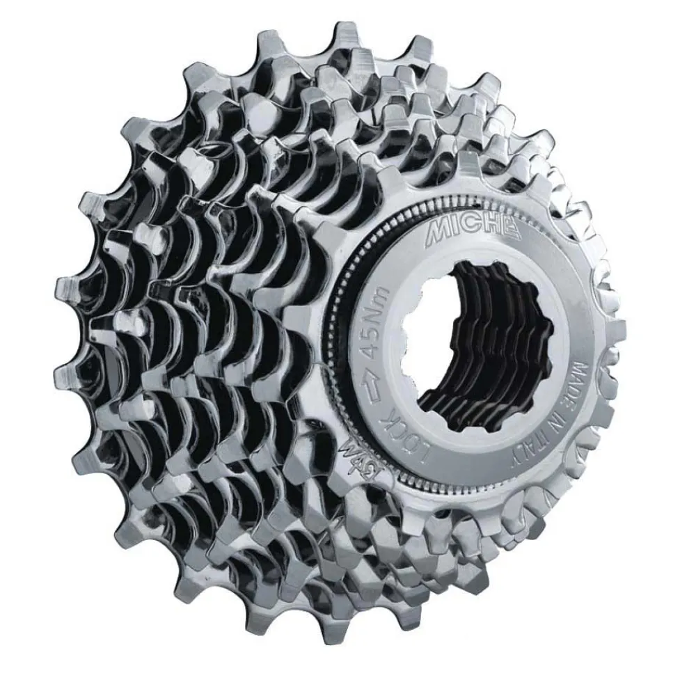 Erleben Sie auf jeder Fahrt den Gipfel der Schaltleistung. Die MICHE Primato Kassette sorgt für knackige, zuverlässige und sofortige Gangwechsel, sodass Sie Ihre Trittfrequenz und Leistung ohne Zögern aufrechterhalten können. Jedes Ritzel verfügt über ein präzise berechnetes Zahnprofil, das die Kette einwandfrei führt, egal ob Sie für einen Sprint hoch- oder für einen steilen Anstieg herunterschalten.