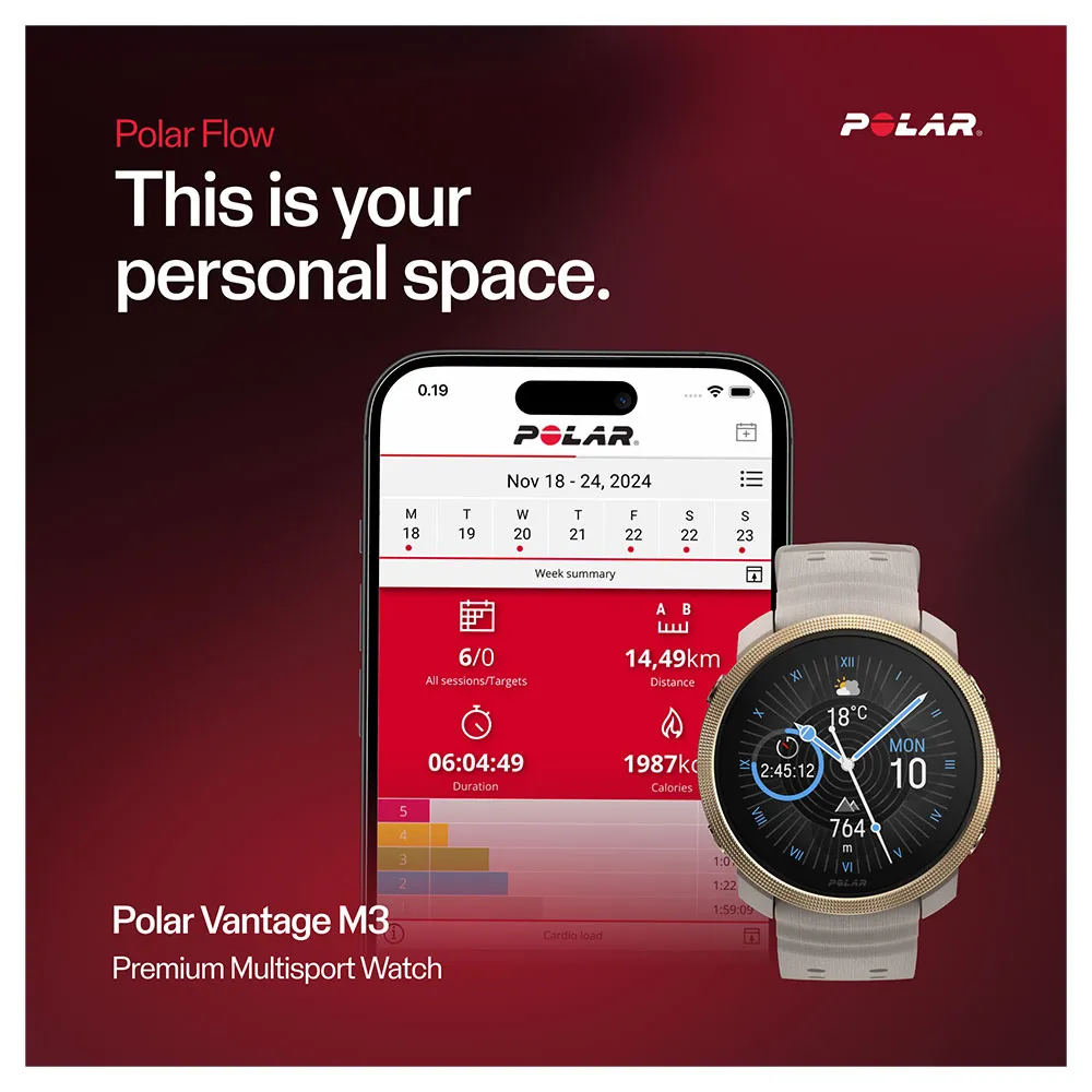 - Mit der Polar Vantage M3 erhalten Sie Zugriff auf unsere ultimative Trainingsplattform - die umfangreichen Trainingsplanungs- und Analysetools von Polar Flow bieten Ihnen automatische Trainingstagebücher, Fortschrittsberichte und vieles mehr, damit Sie alles haben, was Sie brauchen, um Ihre Grenzen auszutesten und neue Wege zu gehen. In Polar Flow können Sie Ihre Uhr mit über 150 verfügbaren Sportprofilen ganz einfach anpassen.