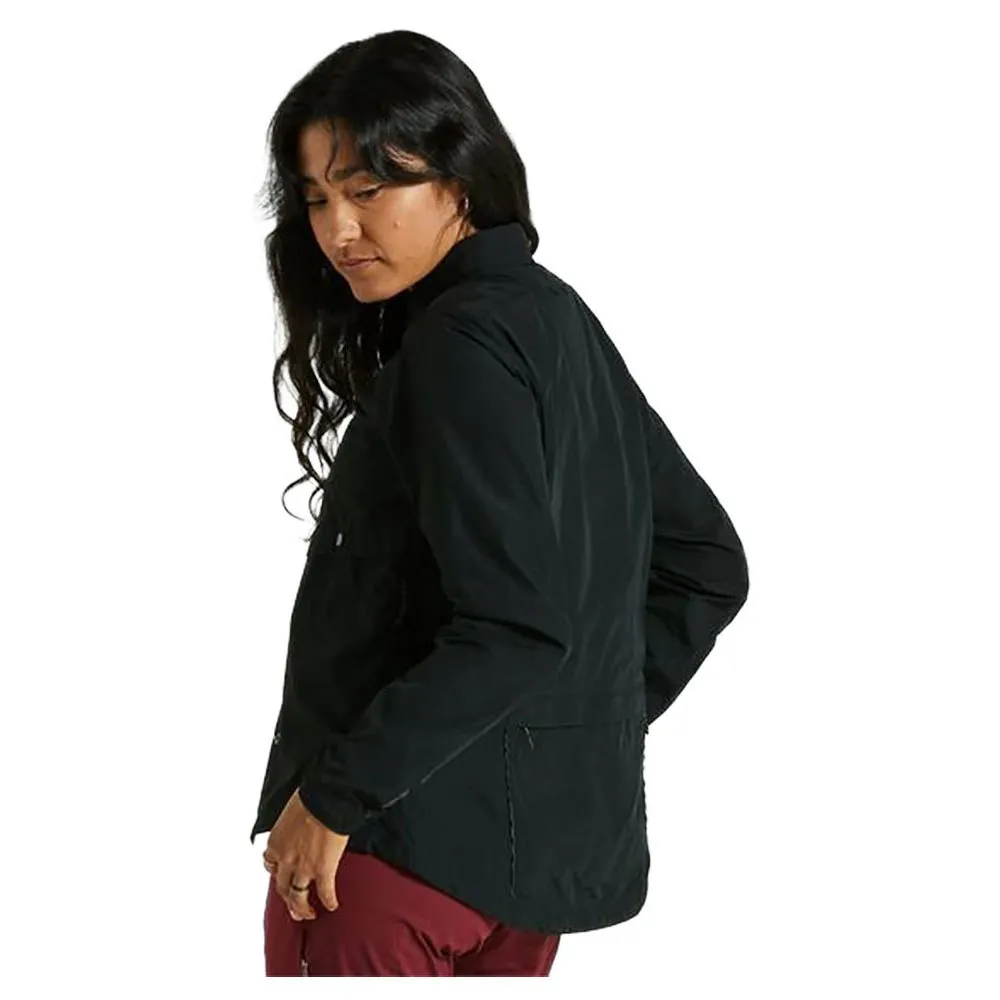 Leichte, klein verpackbare Windjacke mit funktionellen Taschen. Hergestellt aus wind- und wasserabweisendem HC-Lite, das schnell trocknet, leicht ist und für verbesserte Wind- und Wasserbeständigkeit gewachst werden kann. Knopfkragen für zusätzlichen Windschutz, vorgeformte Ärmel mit elastischen Bündchen, optimiert für das Radfahren. Mehrere Taschen – von oben zu öffnende Taschen, eine mit Druckknopfverschluss, eine mit Reißverschluss. Zwei Einschubtaschen mit Reißverschlüssen und eine Tasche mit Zwei-Wege-Reißverschluss am unteren Rücken bieten zusätzlichen Stauraum. Reflektierende Streifen auf der Rückseite. Kann in der eigenen Brusttasche verstaut werden. Teil der Specialized/Fjällräven-Serie für Fahrten in der Stadt und Bikepacking-Abenteuer.