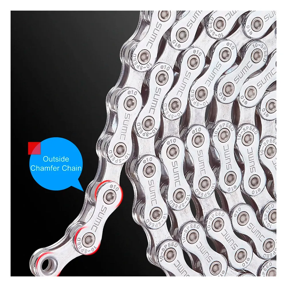 Perfekt für Elektrofahrräder (E-Bikes), Mountainbikes (MTB), Rennräder und Gravelbikes bietet die SUMC 10-fach Kette die ideale Balance aus Kraft, Laufruhe und Haltbarkeit.