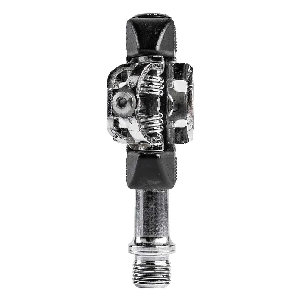 Kompaktes und ultraleichtes MTB-Pedal, entwickelt für Cross Country. Gehäuse aus hochfestem Aluminium mit einer Cr-Mo-Stahlachse für maximale Haltbarkeit und Steifigkeit. Schnellverschluss-System, kompatibel mit Shimano SPD, mit einstellbarer Auslösehärte für eine personalisierte Verbindung. Offenes Design gewährleistet effektives Abführen von Schlamm und Schmutz. Ideal für alle, die Leistung, Zuverlässigkeit und geringes Gewicht suchen