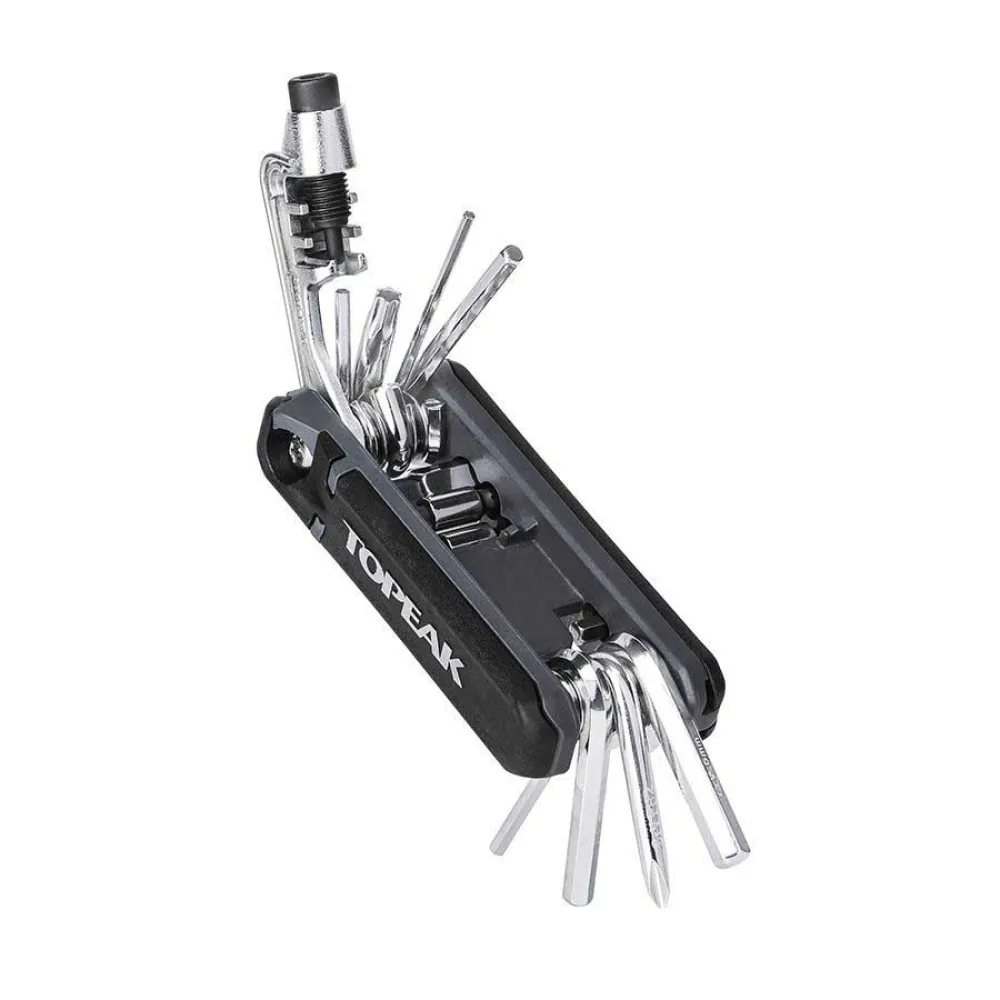 Fahren Sie selbstbewusst mit dem preisgekrönten Topeak Hexus X, dem ultimativen 21-Funktionen-Multitool. Dieses kompakte Kraftpaket ist dafür konzipiert, nahezu jede Reparatur am Straßenrand zu bewältigen, von gerissenen Ketten bis zu lockeren Schrauben. Sein gefeiertes Design umfasst 21 Profi-Werkzeuge, darunter einen kompletten Satz Inbus-/Torx-Schlüssel, einen 12-fach-Kettennieter und ein Presta-Ventileinsatzwerkzeug. Das Geniale liegt in seinen integrierten Reifenhebern, die sicher am Gehäuse einrasten, sodass Sie immer vorbereitet sind. Leicht und ergonomisch ist es die definitive Wahl für Radfahrer, die Zuverlässigkeit und ein vollständiges, platzsparendes Design verlangen