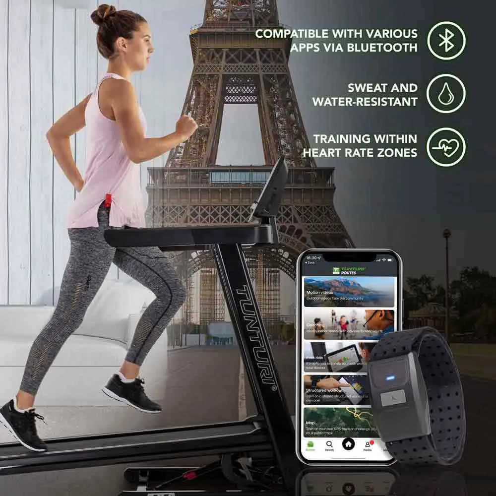 - Das Herzfrequenzarmband ist mit den wichtigsten Fitness-Apps wie Tunturi Routes, Tunturi Training, Kinomap, Zwift und Strava kompatibel. Der Sensor funktioniert mit allen Fitnessgeräten, (GPS) Smartwatches und Fahrradcomputern mit Bluetooth- oder ANT+-Verbindung. Das Herzfrequenzarmband ist auch für Schwimmer geeignet: Es ist bis zu 30 Minuten wasserdicht bei einer maximalen Tiefe von einem Meter (3 Fuß).