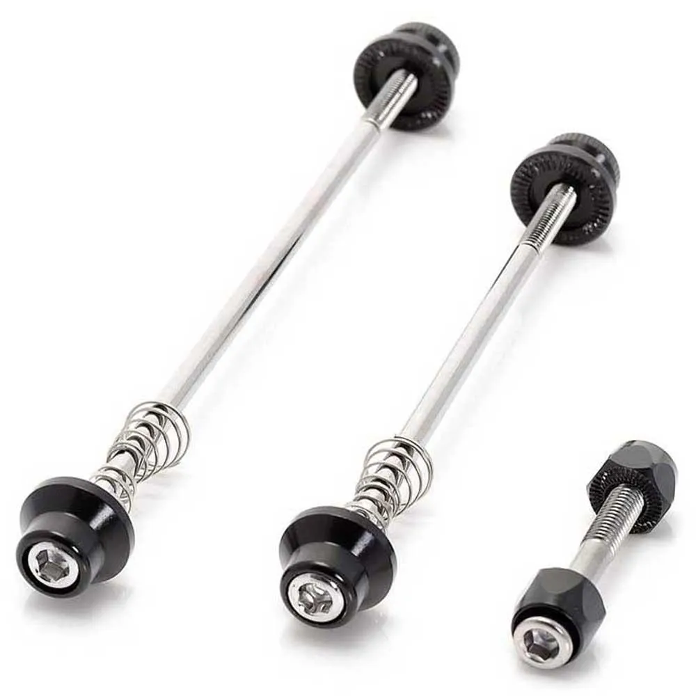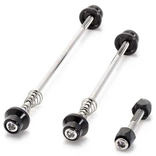 Dieses Schnellspanner-Set bietet ein ausgezeichnetes Preis-Leistungs-Verhältnis und gute Qualität zu einem erschwinglichen Preis. Es bietet zusätzliche Sicherheit gegenüber Standard-Schnellspannern und hilft, Fahrraddiebstahl zu verhindern. Das Design ist leicht, sauber und ästhetisch ansprechend und verleiht Ihrem Fahrrad ein elegantes Aussehen. Die Installation ist einfach und der praktische 5-mm-Inbuskopf ist ein praktisches Merkmal. Diese Schnellspanner sind ein perfektes, funktionelles Upgrade für jedes Fahrrad und werden für ihren guten Halt und ihre solide Leistung gelobt.