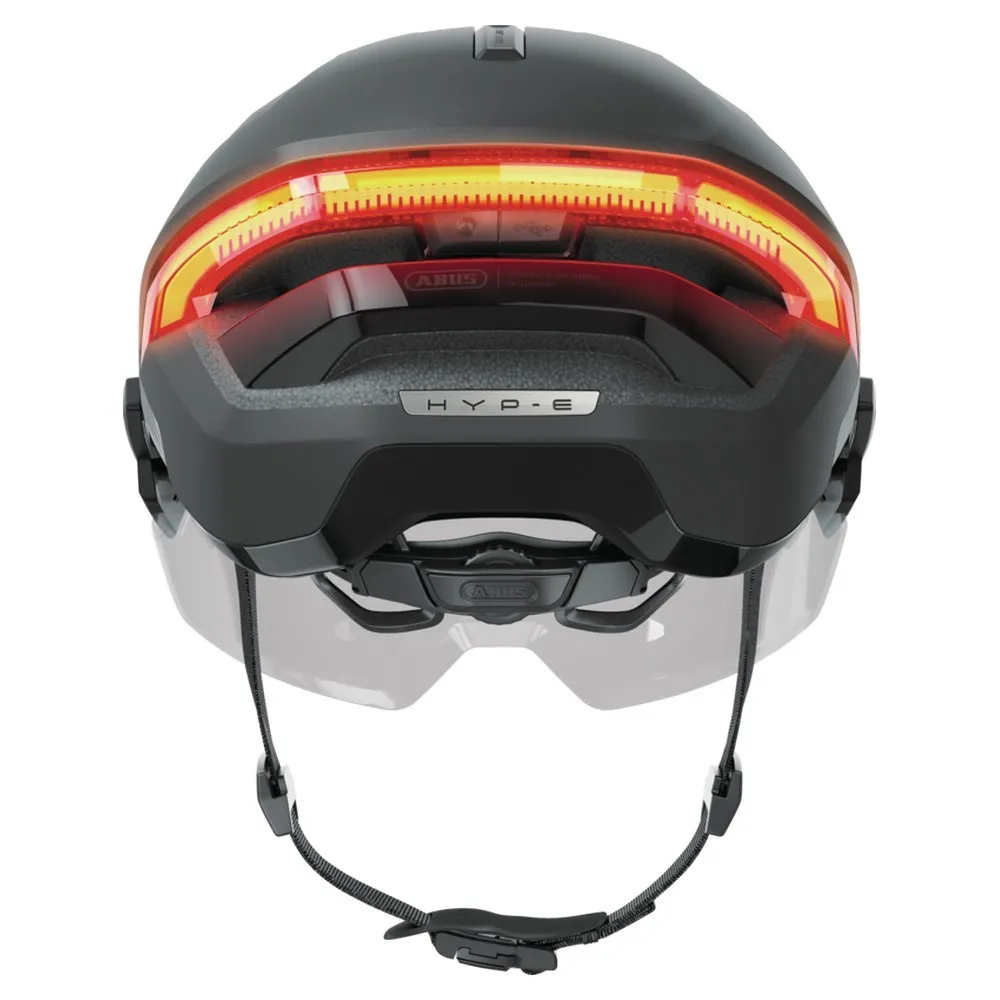 Ride with confidence and style in the ABUS Hyp-E BL Ace urban helmet. Designed for the modern commuter, its standout feature is a large, high-mounted, rechargeable LED backlight for maximum visibility day or night. The robust In-Mold construction provides superior protection, while advanced ventilation keeps you cool. Achieve a perfect, personalized fit with the ponytail-compatible Zoom Ace Urban system. This Ace version includes a sleek, removable visor for added protection from sun and wind, making it the ultimate fusion of safety, comfort, and urban style