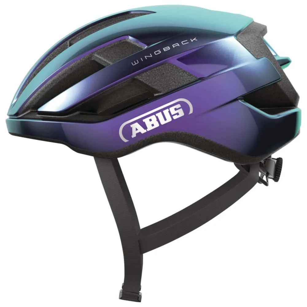 Experience minimalist style and sophisticated function with the ABUS WingBack road helmet. Weighing just 250g, its lightweight in-mould design packs in performance technology. Stay cool with Forced Air Cooling, which uses 17 vents and deep channels to optimize airflow. The flutter-free FlowStraps are aerodynamic and skin-friendly, while the Zoom Ace system allows for quick, precise adjustment and is fully ponytail-compatible. Sporty, modern, and effortlessly functional, the WingBack is ready for any ride