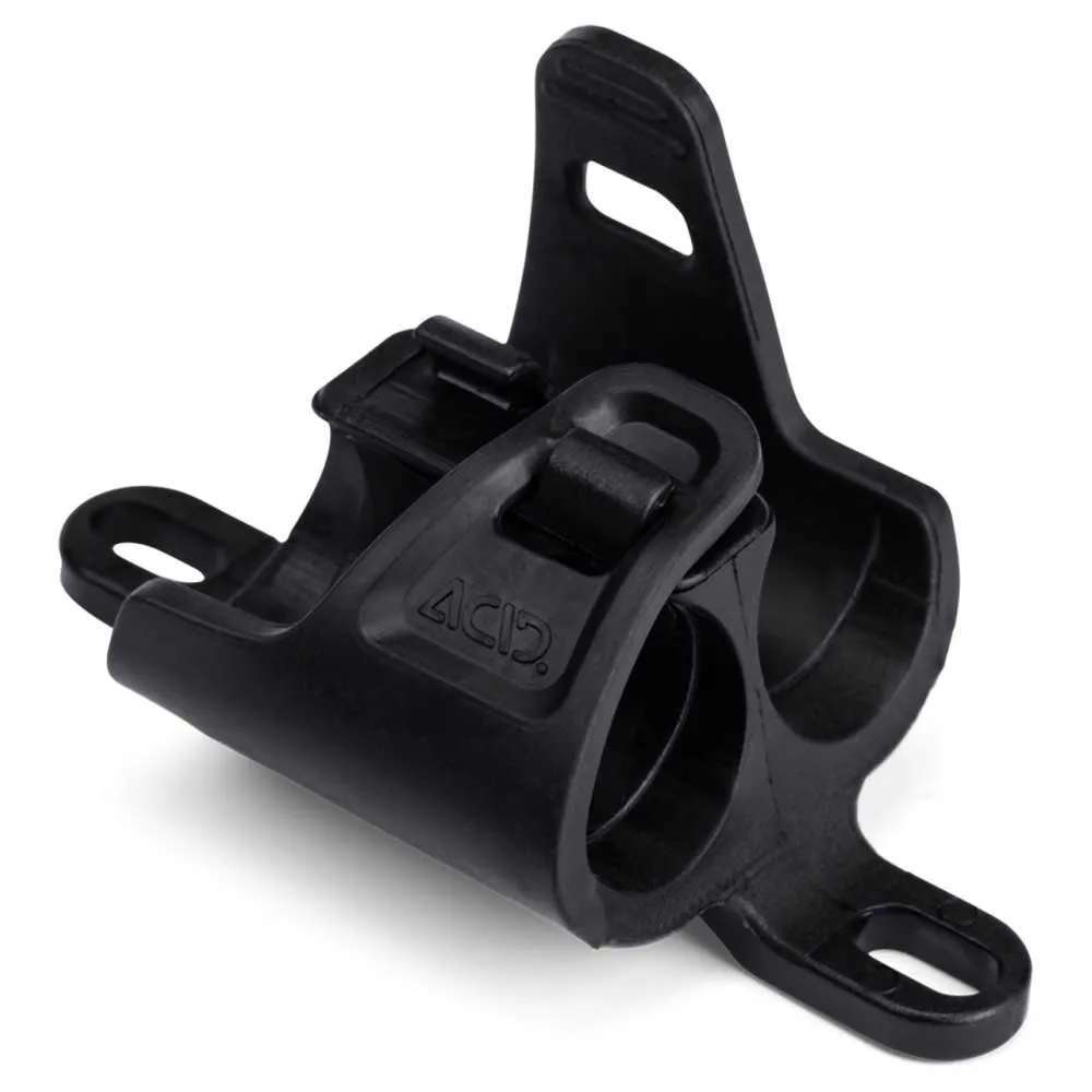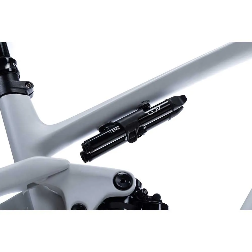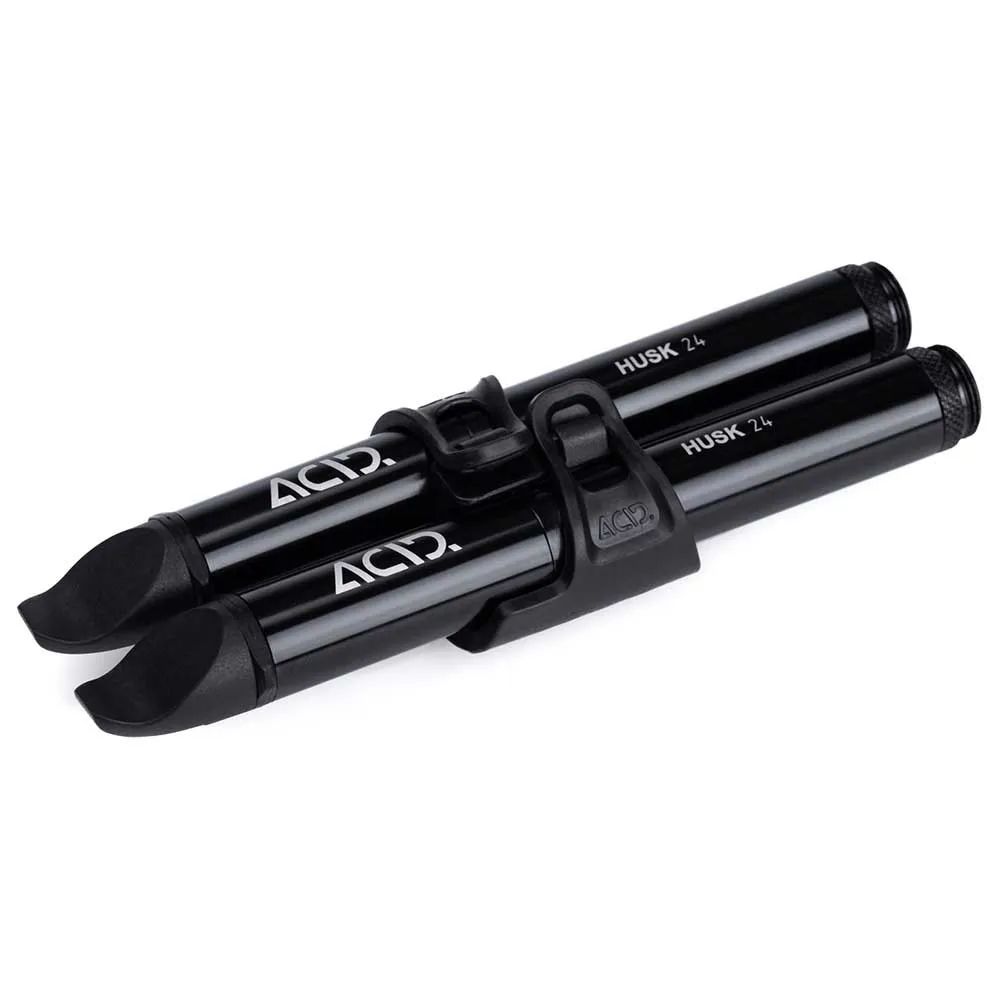 The acid frame mount for the husk multi-tool bolts to the bottle cage mounts on your bike frame. The husk´s metal tubes simply insert on the right- and left-hand sides and it´s all fixed into place rattle-free using the included rubber strap.
