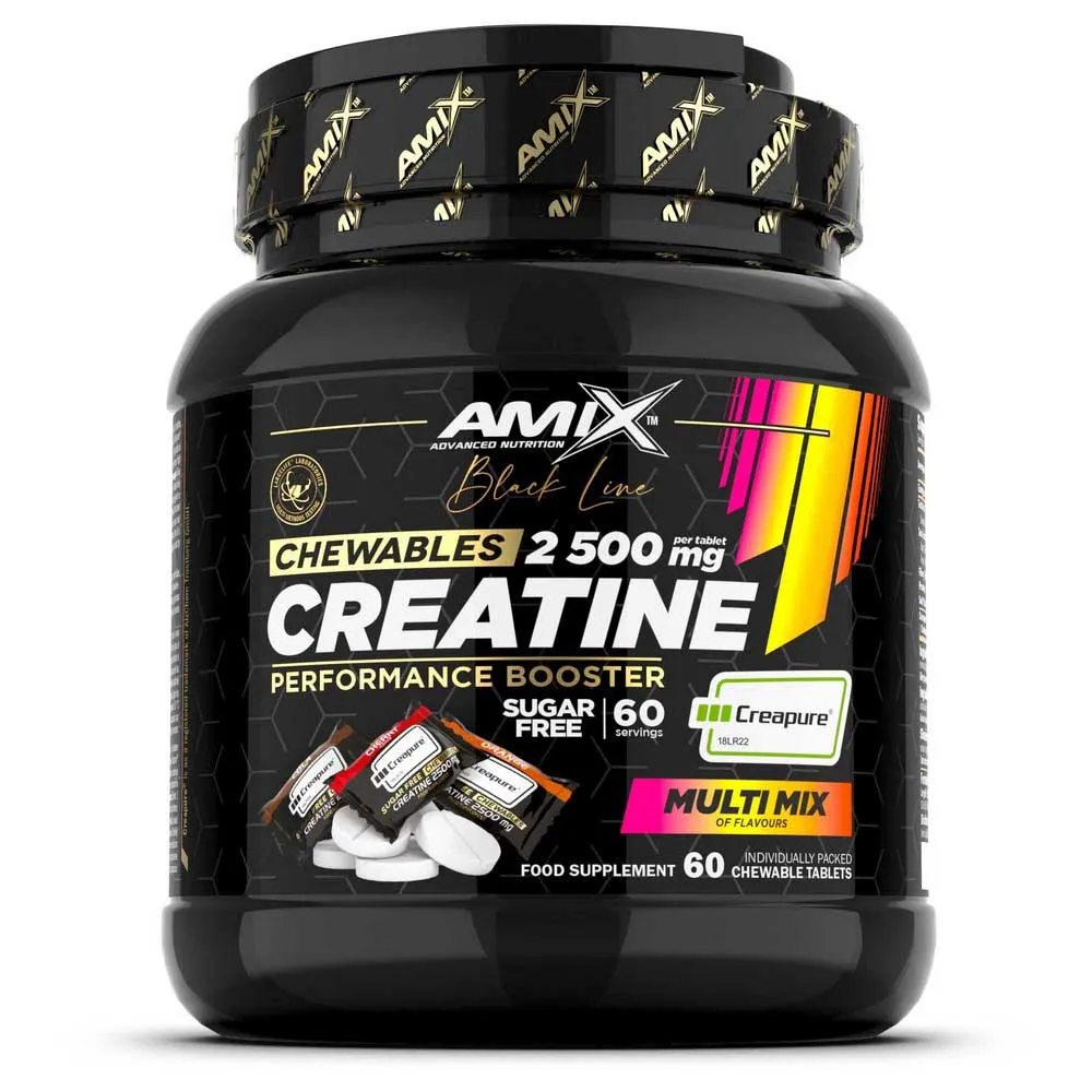 Amix™ Creatine 2500 mg Chewables - contains of Creapure® creatine monohydrate designed for effective supplementation of creatine in the diet for athletes and active individuals. The practical chewing form allows easy use at any time of the day. Creatine increases physical performance in successive bursts of short-term, high intensity exercise. The beneficial effect is obtained with a daily intake of 3 g of creatine.