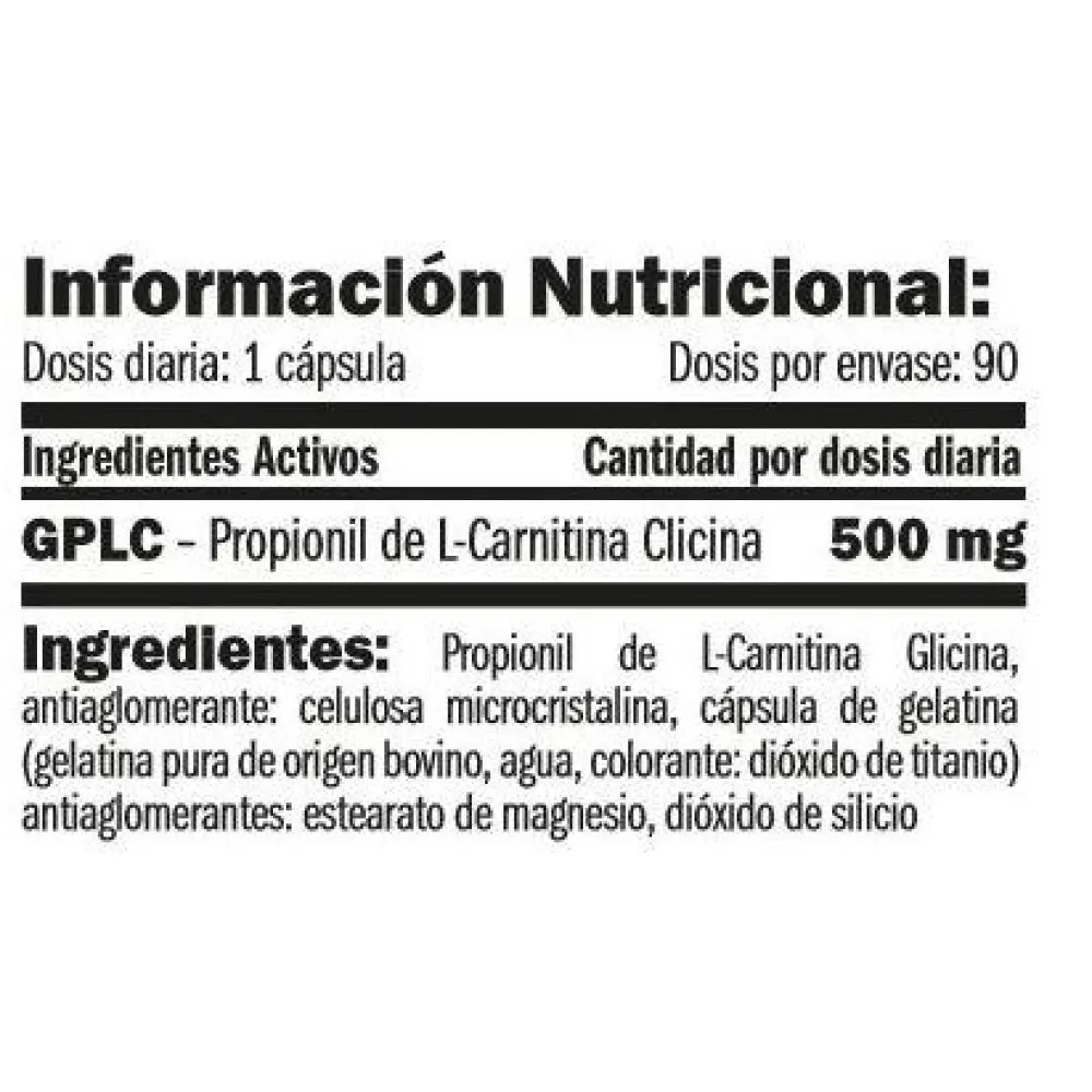 Amix ™ advanced nutrition gplc is a new supplement based on a carnitine propionyl ester (a carnitine form) to which the essential amino acid glycine has been added.the propionyl glycine l-carnitine (gplc) has various properties, such as increasing production of nitric oxide during physical activity, which increases blood flow, improving muscle pumping and vascularity. In addition, the increase in nitric oxide production causes a greater arrival of oxygen and nutrients to muscle tissue. Gplc also has a marked antioxidant function, being a powerful free radical neutralizer since it protects our organism from lipid peroxidation (formation of free radicals). Gplc can also be very beneficial for the transport of fatty acids inside the cell mitochondria so that they can be used as a source of energy (burning function). Principles .- improves muscle pumping and vascularity.- it causes a greater arrival of oxygen and nutrients to the muscles.- it has a great antioxidant activity.- improves the metabolism of fatty acids (burning action) .- 90 dose per container of l-carnitine glycine, antiaglymelant: microcrystalline cellulose, gelatin capsule (pure gelatin of bovine origin, water, dye: titanium dioxide) antiaglomerantes: magnesium stearate, silicon dioxide. Employment of employment as dietary supplement for healthy adults, take a capsule with 200 ml of water with one of the main meals. Presentation of 90 capsules.