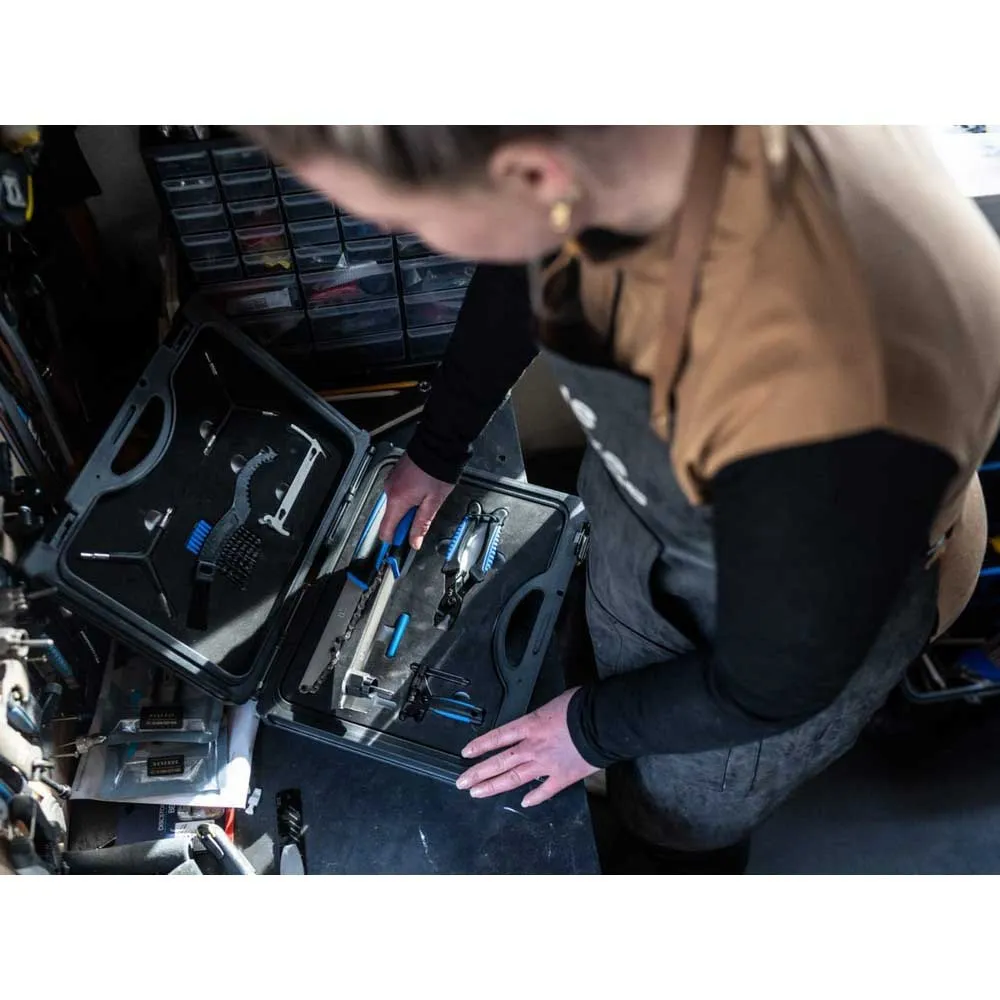 The Chain&Cassette set contains every single tool you might need to work on your chain and cassette. From maintenance to replacement of parts. This handy and luxurious toolbox keeps the tools protected and in order so that you will always have the right tools on hand.
