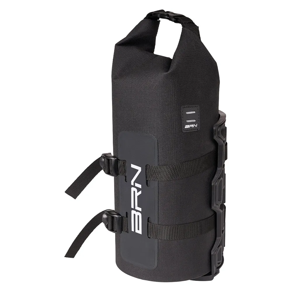 Expand your cycling adventures with the BRN Cargo Fork Bag. This 3.8L bag offers a smart, streamlined solution for bikepackers and commuters needing extra space. Its fully waterproof, robust Cordura construction and secure roll-top closure keep your gear completely dry and protected on any terrain. Designed for stability, it won´t compromise your balance or handling. The versatile mounting system fits forks with 3-bolt cages or attaches securely with straps, making it a perfect upgrade for almost any bike. Carry more and explore further with confidence