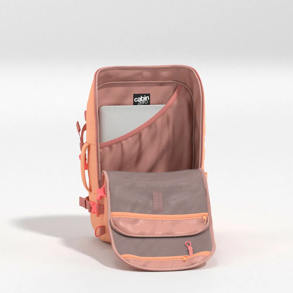 It combines all the trademark CabinZero bag features, including a quick-access zip pocket, a main compartment that can be loaded from the top or the front, a water bottle holder and a stow-away waist belt and shoulder straps.
