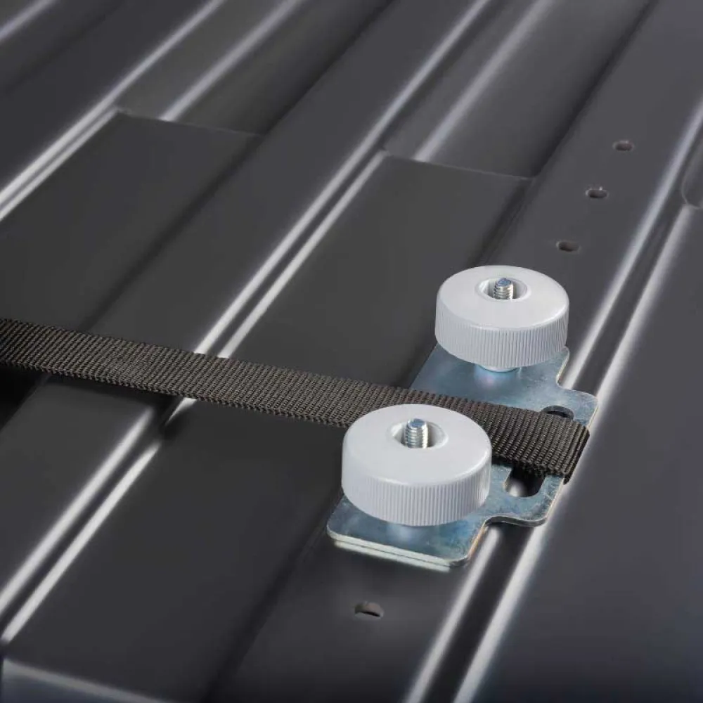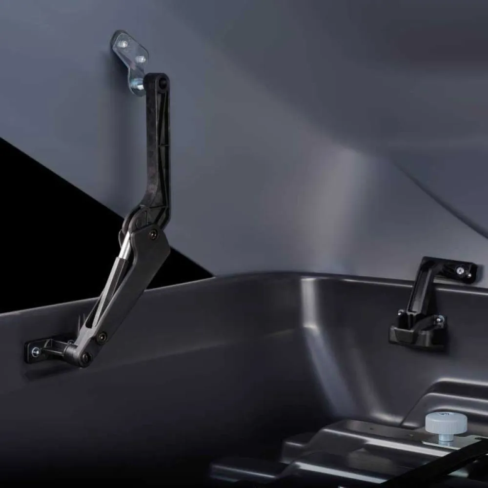 - Hinges equipped with shock-absorbers to facilitate the opening and closing of the roof box..