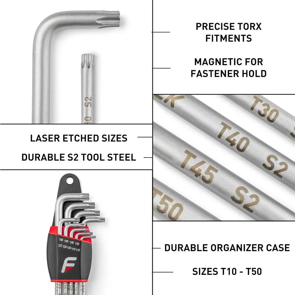 Uncompromising Quality: Each wrench in the FEEDBACK Torx Wrench Kit is constructed from hardened and tempered tool steel, ensuring exceptional strength, durability, and resistance to wear and tear. The precision-machined tips provide a secure, tight fit on Torx fasteners, preventing stripping and cam-out, even under high torque.