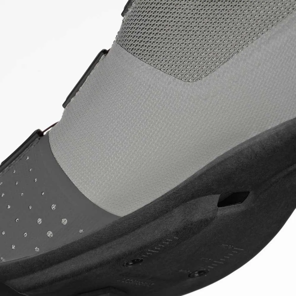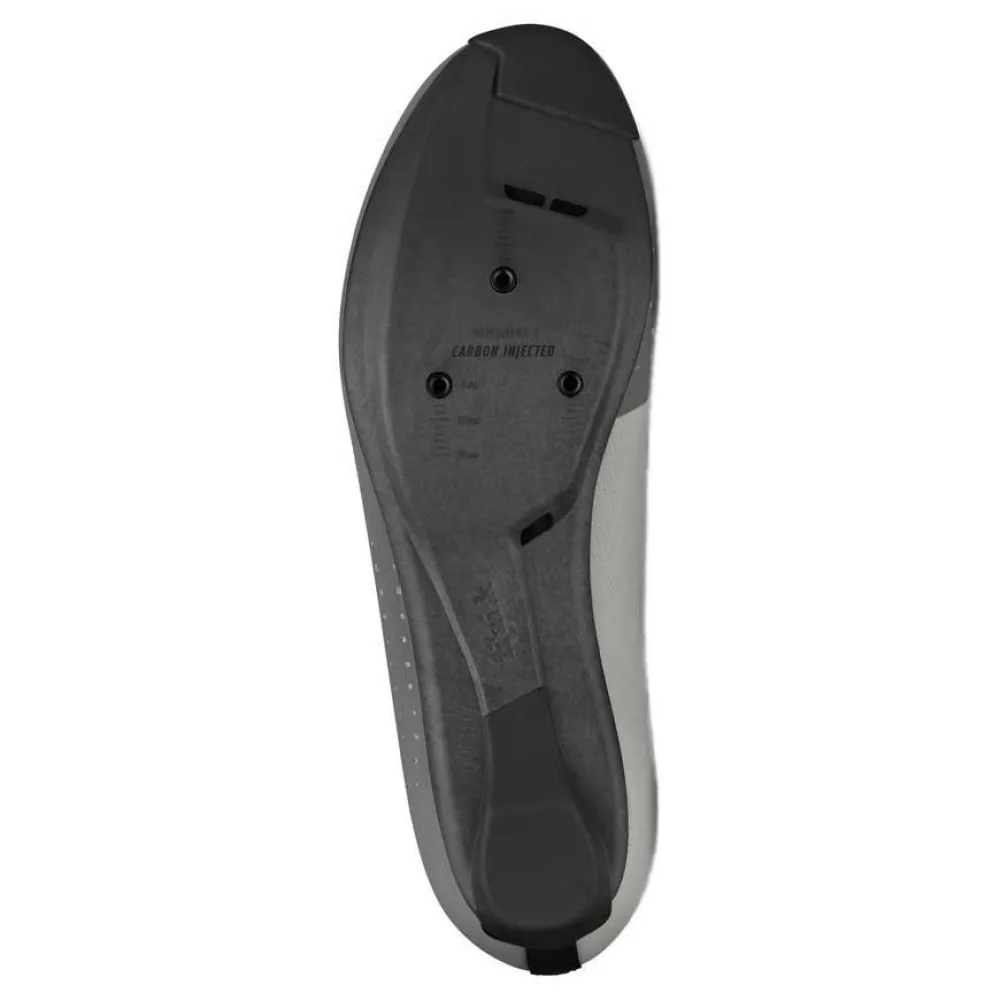 The moderately stiff R4 outsole strikes a balance between comfort and pedalling efficiency to make it a true all-rounder, featuring a lower profile structurally optimized with a 15% infused carbon fiber composition. The R4 outsole further provides efficient ventilation with internal channelling for effective temperature regulation. The cleat is positioned slightly further towards the heel compared to traditional placement to optimize pedalling efficiency and reduce knee compression, especially suited to aggressively forward aero riding positions.