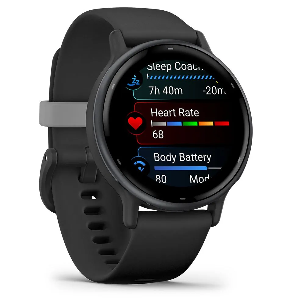 Conócete mejor con el Garmin vívoactive 5. Más que un reloj inteligente, es tu entrenador personal en la muñeca. Visualiza tus datos de salud y forma física con un detalle impresionante en una brillante pantalla AMOLED de 1.2”, todo ello con hasta 11 días de autonomía de batería. Obtén un entrenamiento de sueño personalizado, monitoriza tus niveles de energía Body Battery™ y registra tu actividad con más de 30 aplicaciones deportivas. Comprende tu recuperación, escucha música, realiza pagos sin contacto con Garmin Pay™ y mantente conectado con notificaciones inteligentes. El vívoactive 5 está diseñado específicamente para ayudarte a alcanzar tus metas
