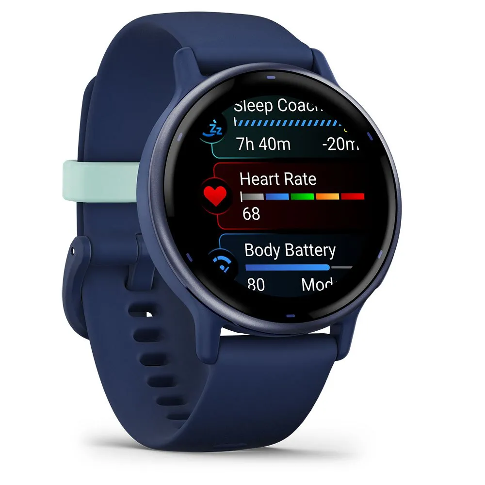 Conócete mejor con el Garmin vívoactive 5. Más que un reloj inteligente, es tu entrenador personal en la muñeca. Visualiza tus datos de salud y forma física con un detalle impresionante en una brillante pantalla AMOLED de 1.2”, todo ello con hasta 11 días de autonomía de batería. Obtén un entrenamiento de sueño personalizado, monitoriza tus niveles de energía Body Battery™ y registra tu actividad con más de 30 aplicaciones deportivas. Comprende tu recuperación, escucha música, realiza pagos sin contacto con Garmin Pay™ y mantente conectado con notificaciones inteligentes. El vívoactive 5 está diseñado específicamente para ayudarte a alcanzar tus metas
