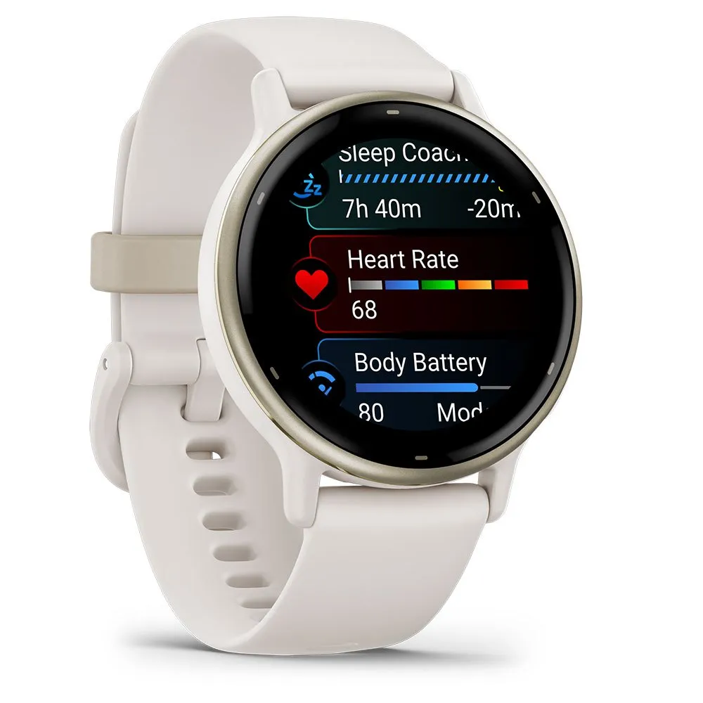 Conócete mejor con el Garmin vívoactive 5. Más que un reloj inteligente, es tu entrenador personal en la muñeca. Visualiza tus datos de salud y forma física con un detalle impresionante en una brillante pantalla AMOLED de 1.2”, todo ello con hasta 11 días de autonomía de batería. Obtén un entrenamiento de sueño personalizado, monitoriza tus niveles de energía Body Battery™ y registra tu actividad con más de 30 aplicaciones deportivas. Comprende tu recuperación, escucha música, realiza pagos sin contacto con Garmin Pay™ y mantente conectado con notificaciones inteligentes. El vívoactive 5 está diseñado específicamente para ayudarte a alcanzar tus metas