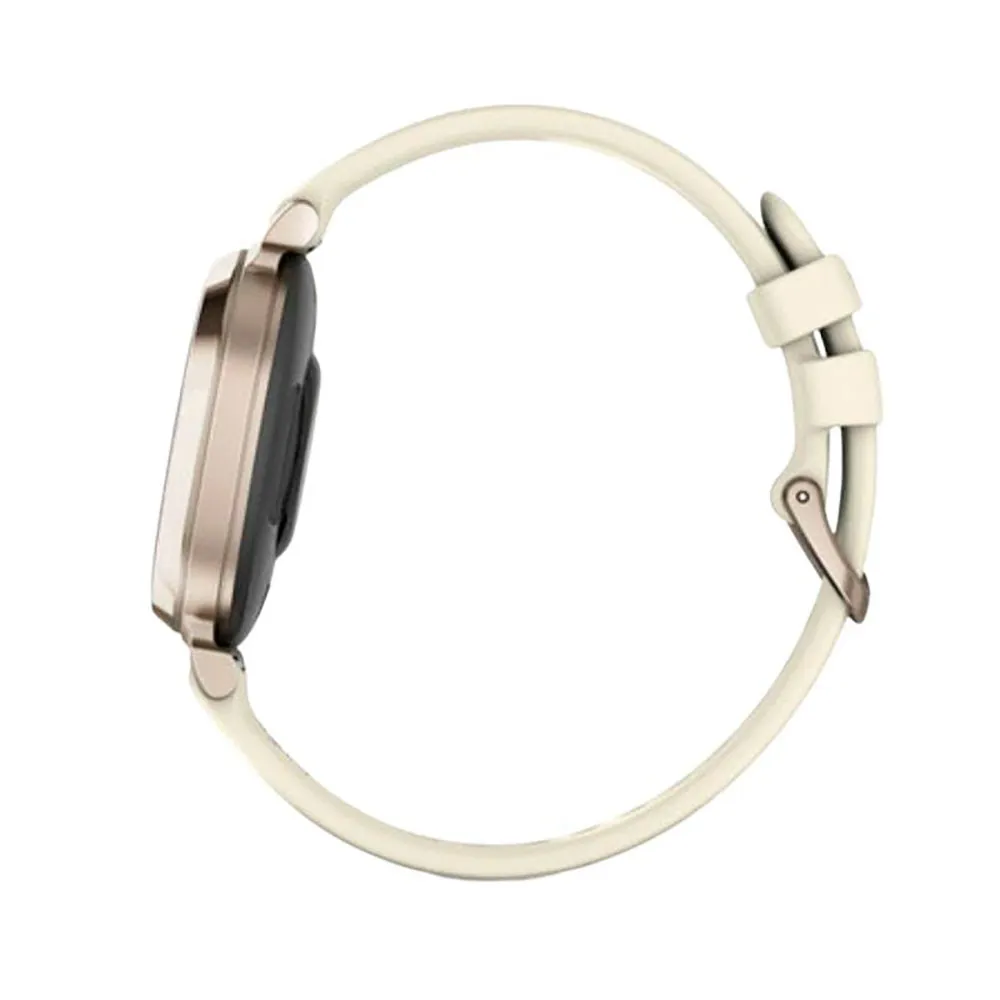 Garmin Lily 2, reloj inteligente con pantalla táctil, monitoreo de frecuencia cardíaca, notificaciones del móvil y batería de hasta 5 días, en color beige.