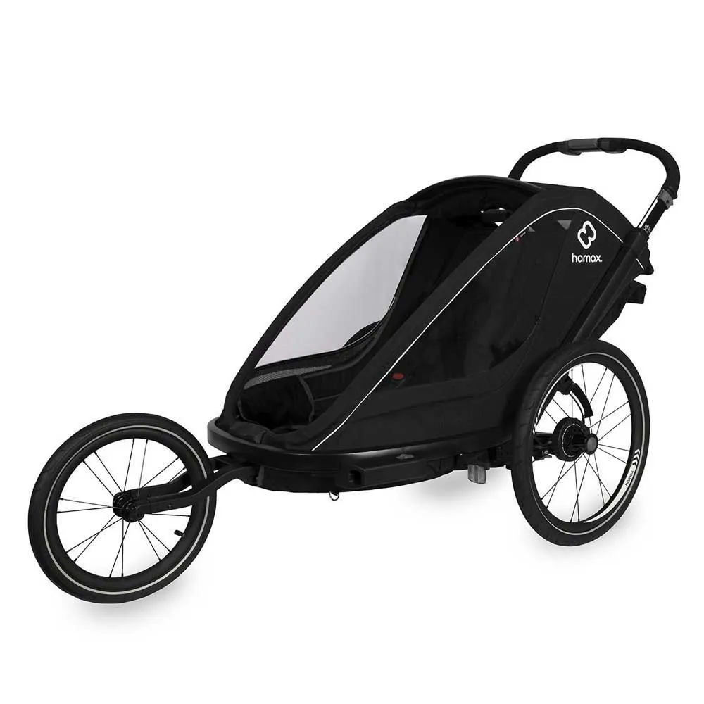 The HAMAX Breeze Trailer Black is a sleek and stylish trailer designed for transporting young children. Its black color adds a touch of sophistication while remaining highly visible on the road. This trailer is perfect for active parents who enjoy cycling and want to bring their children along for the ride.