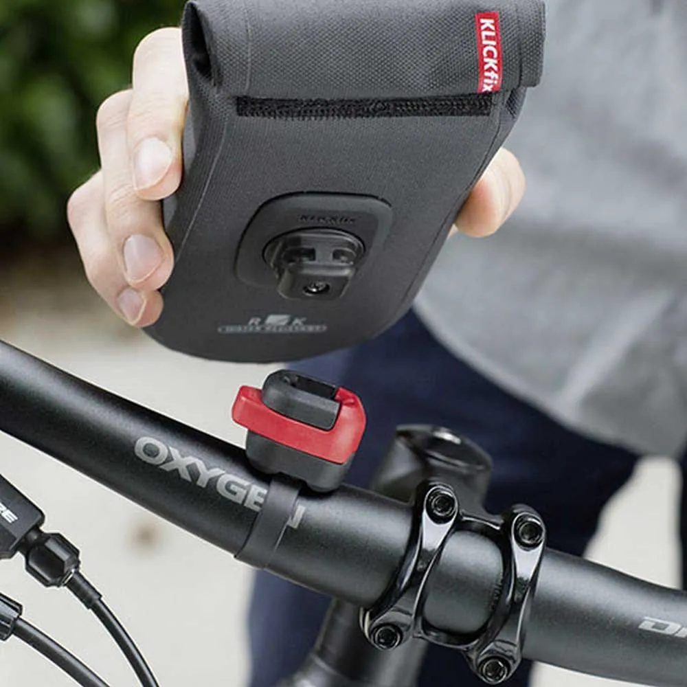 - Using the klickfix quad mini adapter, the bag can be easily clicked onto the handlebar or stem, while the integrated rotatable coupling allows quickly changing from vertical to horizontal orientation.