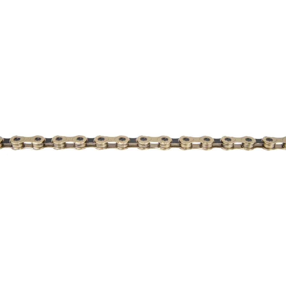 Elevate your 12-speed ride with the KMC X12 chain, engineered for flawless shifting and exceptional durability. Perfect for road, MTB, and gravel, its X-Bridge technology delivers quick, decisive gear changes while chamfered plates ensure a quiet, efficient ride. The striking gold Titanium Nitride coating reduces friction and extends its lifespan. Universally compatible with Shimano, SRAM, and Campagnolo systems, this versatile chain is the definitive upgrade for any high-performance drivetrain, complete with an easy-to-use MissingLink connector