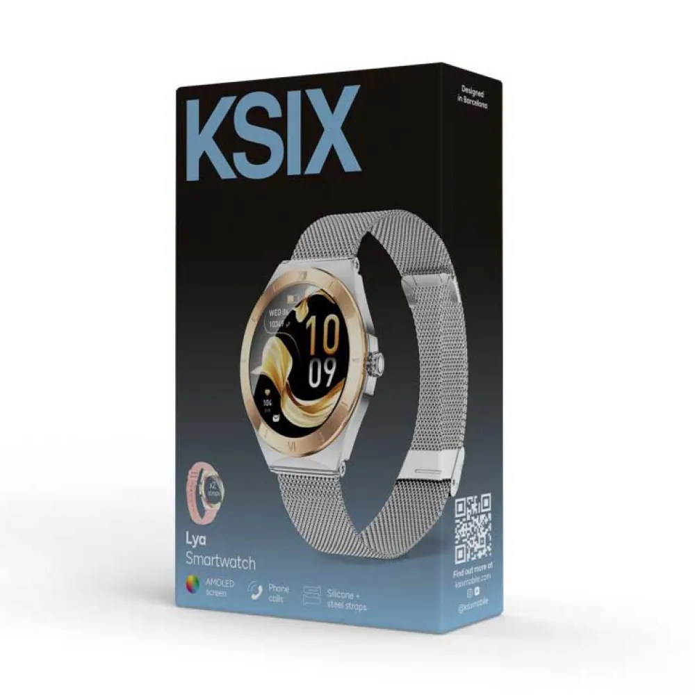 Life isn´t square, so why should your watch be? The KSIX Lya smartwatch blends elegance and tech with its sophisticated round design and vibrant 1.19" AMOLED screen. Effortlessly switch from gym to glam with two interchangeable metal and silicone straps. Monitor your health with heart rate and SpO2 tracking, crush your goals with over 100 sports modes, and enjoy up to 5 days of battery life. Answer calls, get notifications, and use the voice assistant right from your wrist. It’s the perfect balance of style and function, designed to keep up with your life