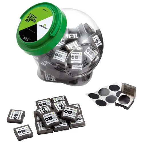 The Merida Kit Box 100 Holds 100 Mini-Packs, Each Containing 6 Self-Adhesive Repair Patches, Sandpaper And An Instruction Sheet. Perfect For Last-Minute Sales, The Kit Box Is Presented In A Space-Saving, Eye-Catching Jar That Customers Won´t Be Able To Resist.