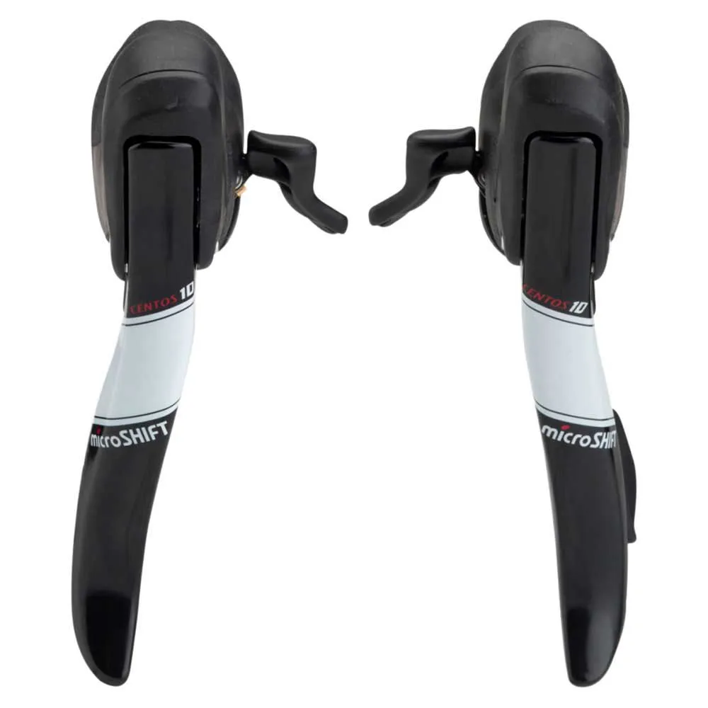 The pair of Microshift 2x10 Centos levers is intended for road use. It is compatible with double chainring transmissions and 10-speed cassettes.