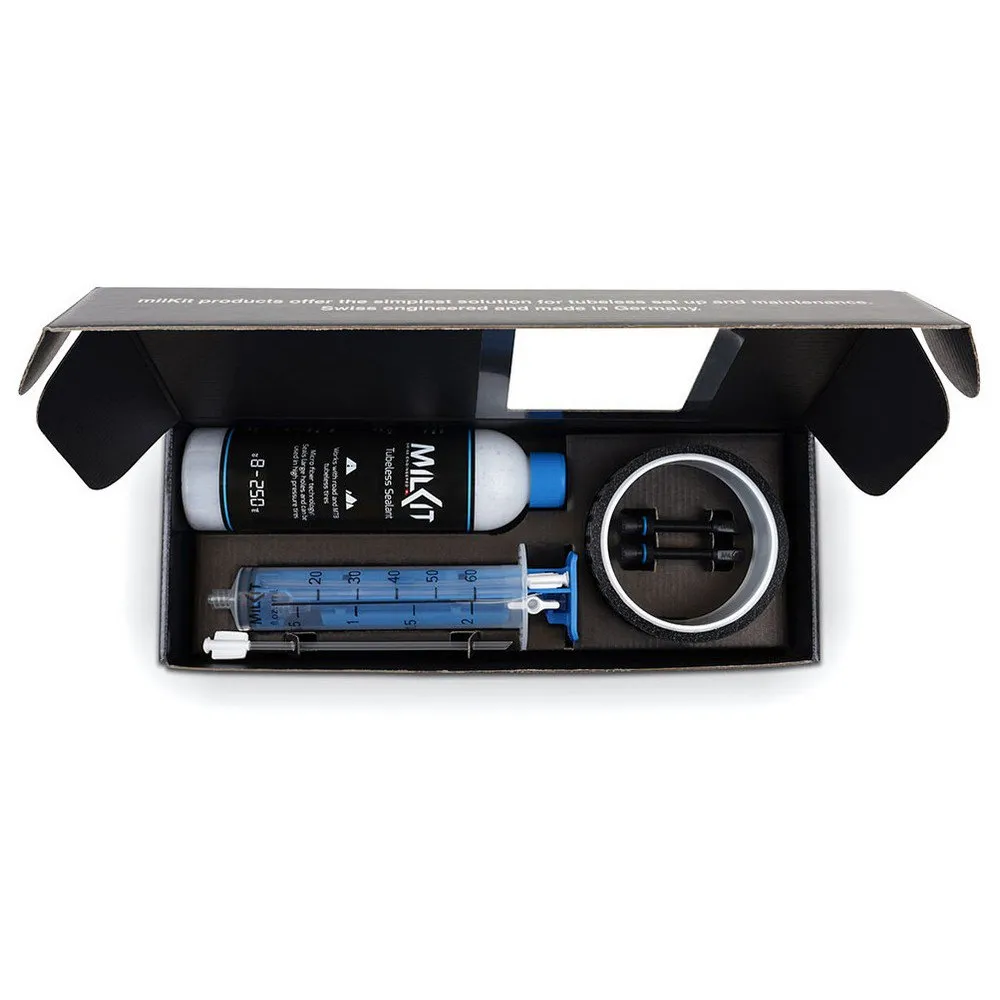 - The milKit syringe and valve system means tires can be mounted dry and sealant added after – no mess and faster results!