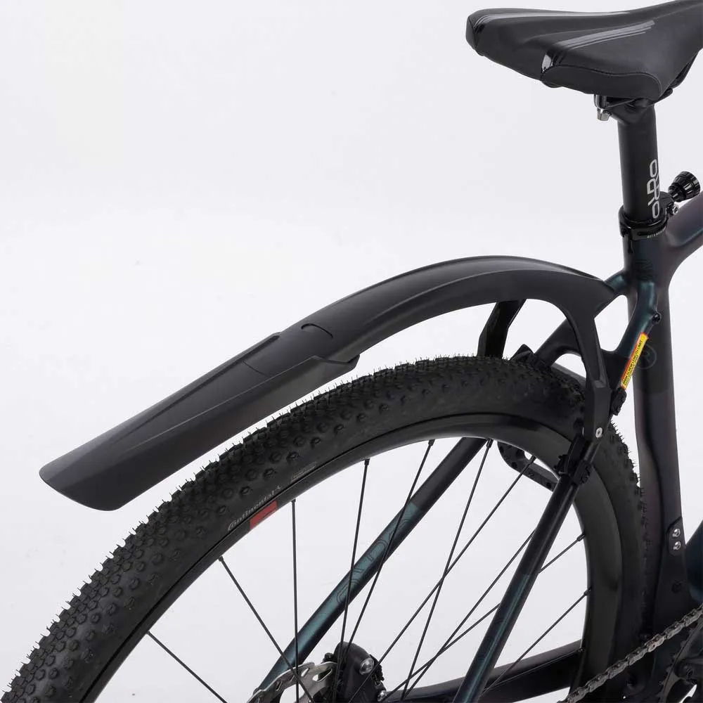 Designed for quick fitting and removal Mudstop RD offer protection from rain and mud when the weather takes a turn for the worse, either on the road or gravel. With the silicone fitting straps in different lengths, fitting/removal takes seconds and silicone frame protection there is no risk of damage to the frame or forks. The fender angles are adjustable for different frame designs.
