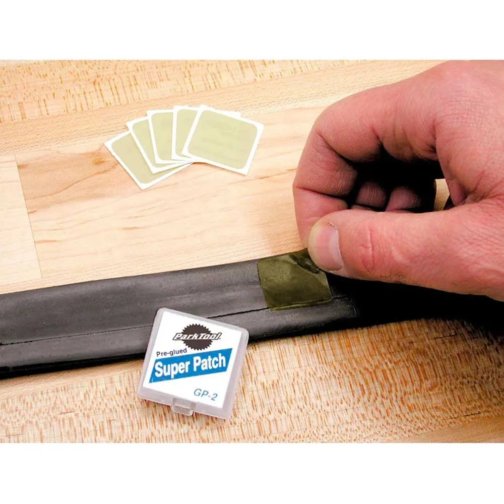 A flat tire can instantly take the air out of any ride. The GP-2 includes everything needed to repair a punctured inner tube without messy glue or adhesive. Our self-adhesive patches were engineered in collaboration with 3M®, and stretch, flex, twist, and turn right along with the tube, so you can continue on to your destination with confidence. Lightly roughen the tube with the included sandpaper, clean, apply patch directly to the puncture, and you’re ready to reinstall, reinflate and ride.Includes six patches and one square of sandpaper in a space-efficient take-along box. Compatible with standard butyl rubber inner tubes Not compatible with tubeless tire bodies or latex inner tubes