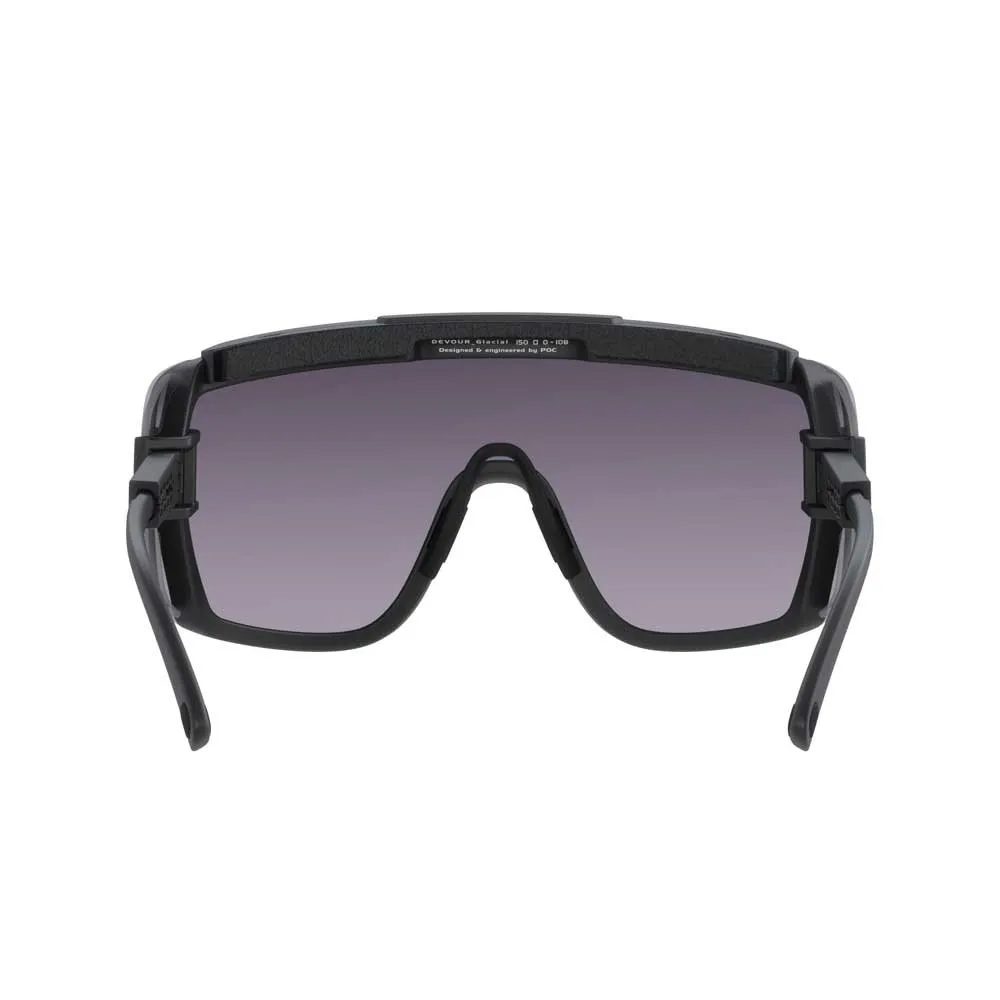 Conquer the brightest glaciers with POC Devour Glacial sunglasses. Engineered for extreme conditions, they provide ultimate protection with extra eye shields to block maximum light. The Clarity lens, fine-tuned for snow, delivers unparalleled vision with complete UV400 protection. Find your perfect, secure fit with fully adjustable temples and a grippy nose piece, ensuring comfort and stability. With a massive field of view, anti-scratch and Ri-Pel treatments, and an included spare clear lens, these are the ultimate choice for all-condition mountain adventures