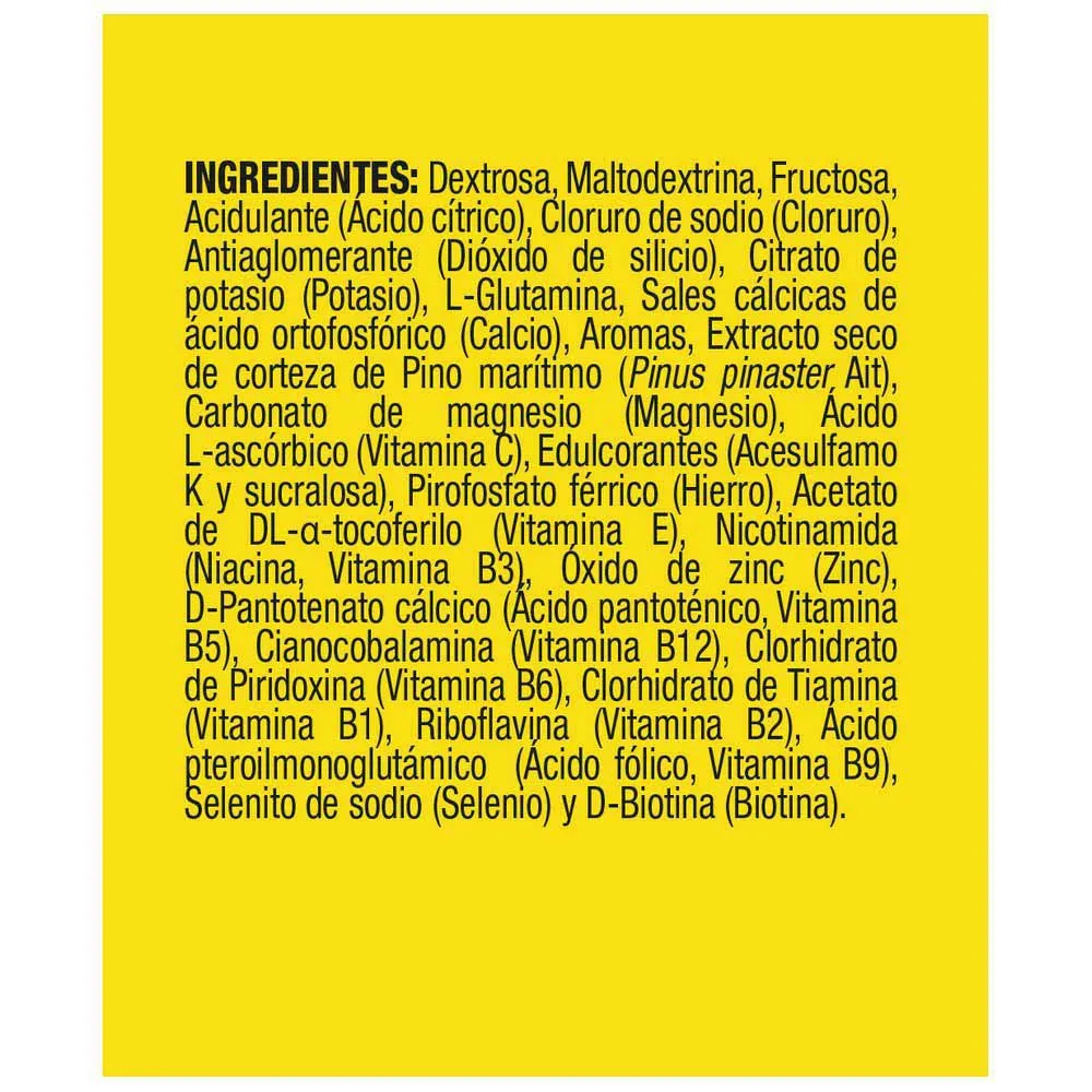 - Pine extract, natural antioxidant with rapid absorption and anti-inflammatory action in intense exercise, which helps to prevent muscle cramps and pain, during and / or after sports.