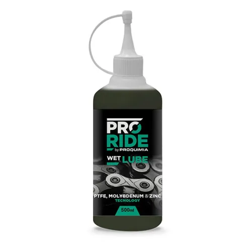 Wet lubricant for bicycle chains. With PTFE and anti-wear, anti-friction and anti-oxidant additives based on molybdenum and zinc technology. Particularly suitable for wet and extremely dirty environmental conditions.