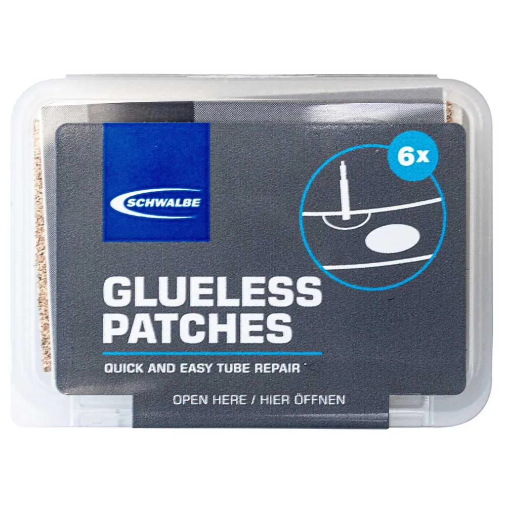 This glueless patch kit is ideal for repairing Schwalbe Aerothan and TPU inner tubes. Its compact and lightweight design is very practical for carrying on rides. The patches provide a quick and easy repair without needing glue. For a reliable, long-lasting fix, users stress the importance of thoroughly cleaning the tube surface before application. The large, effective patches make for a simple and convenient repair solution